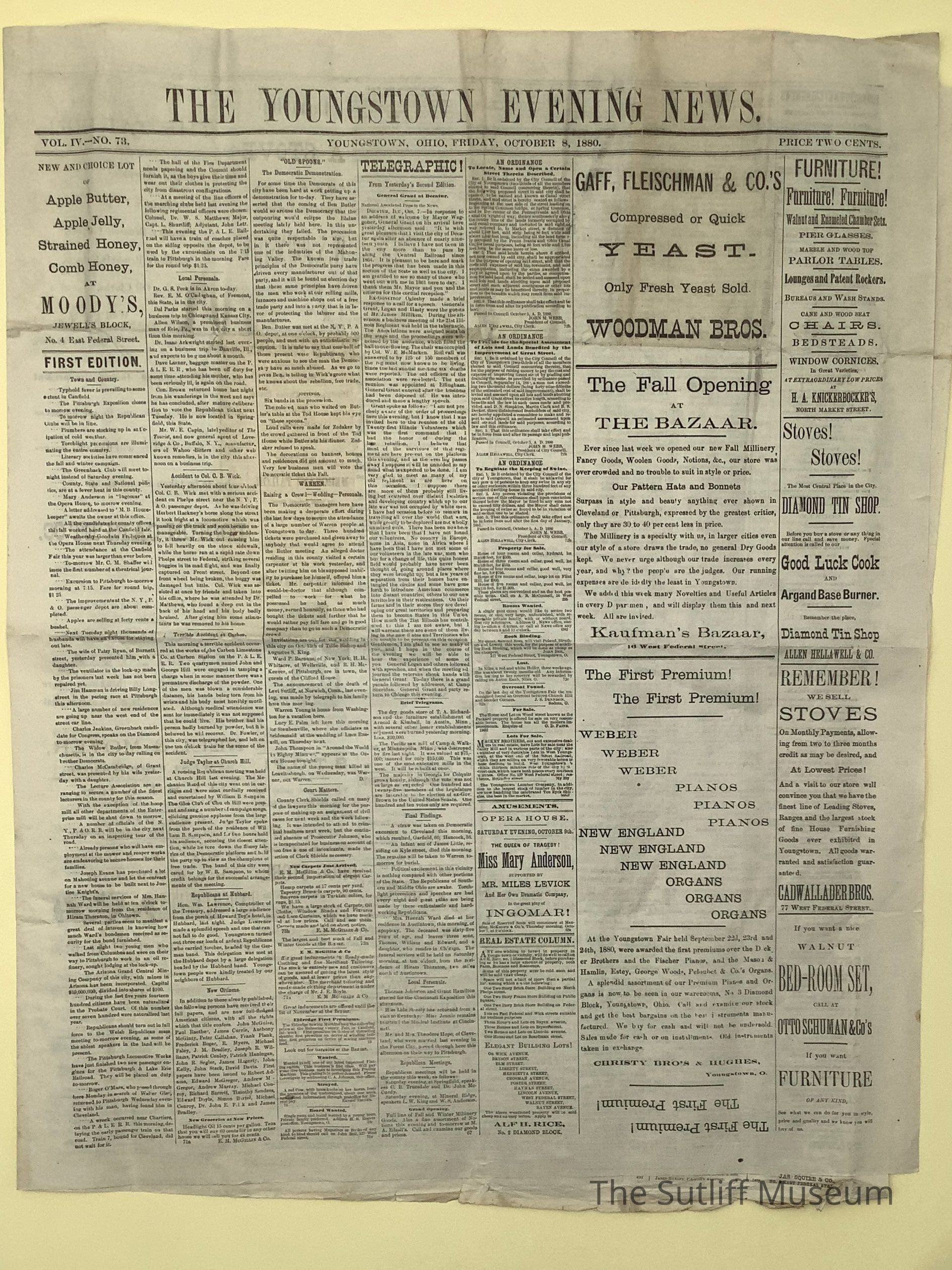 The Youngstown Evening News 10/08/1880Entry/Object ID