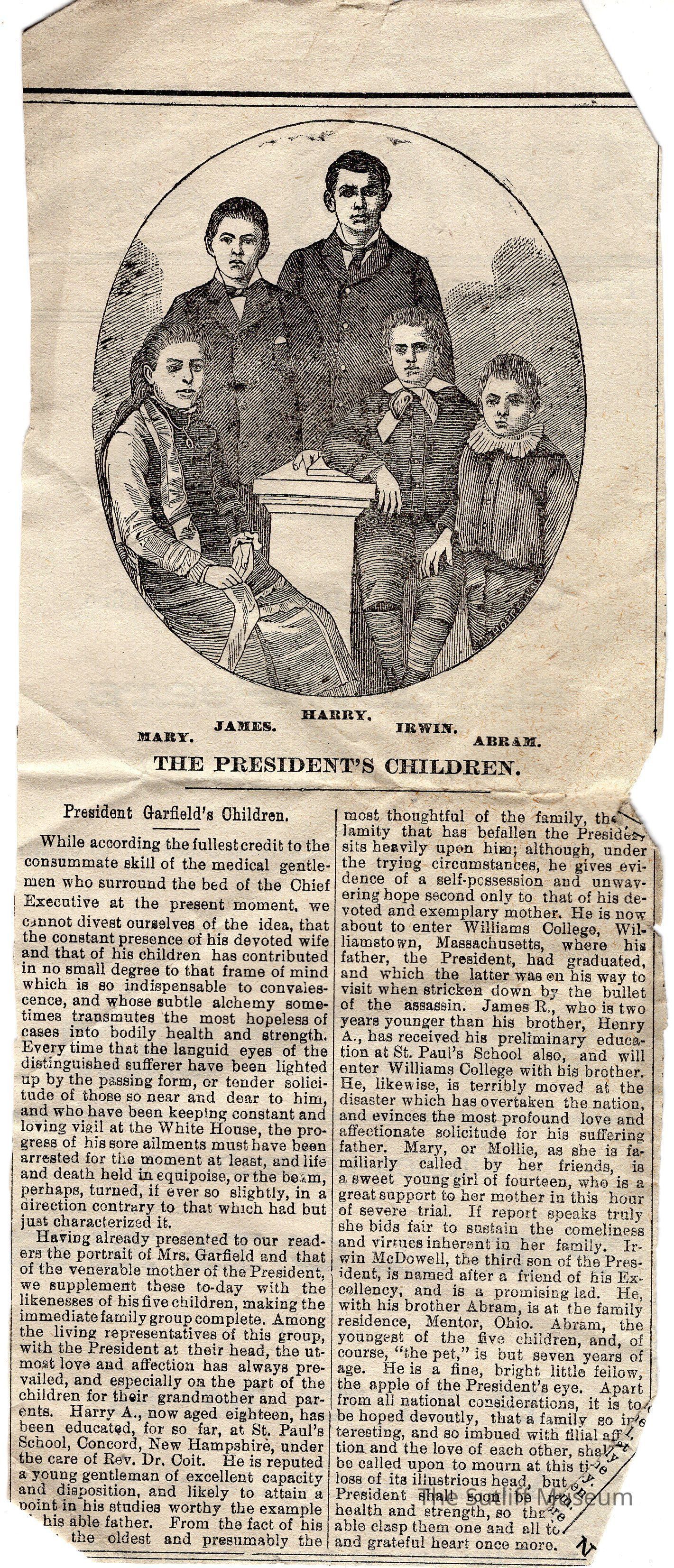 The Youngstown Evening News newspaper cut out of an article about President Garfield's Children.Collection