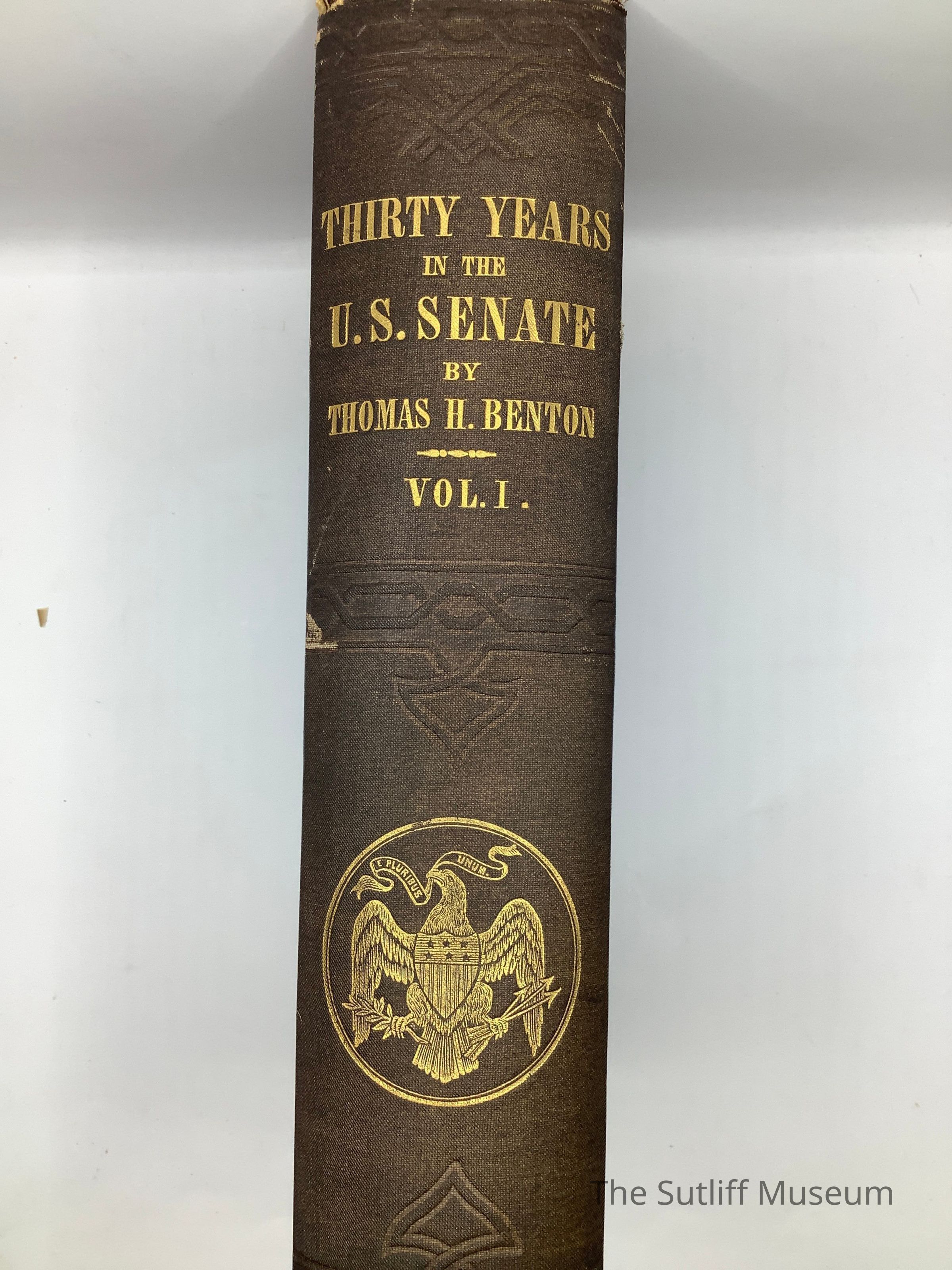 Brown cloth rigid cover with blind embossed oval design on front and back cover and gold embossed title and author information on spine, along with eagle and banner symbol. 9.5 inches high X 6.5 inches wide. 739 pages plus index.Collection