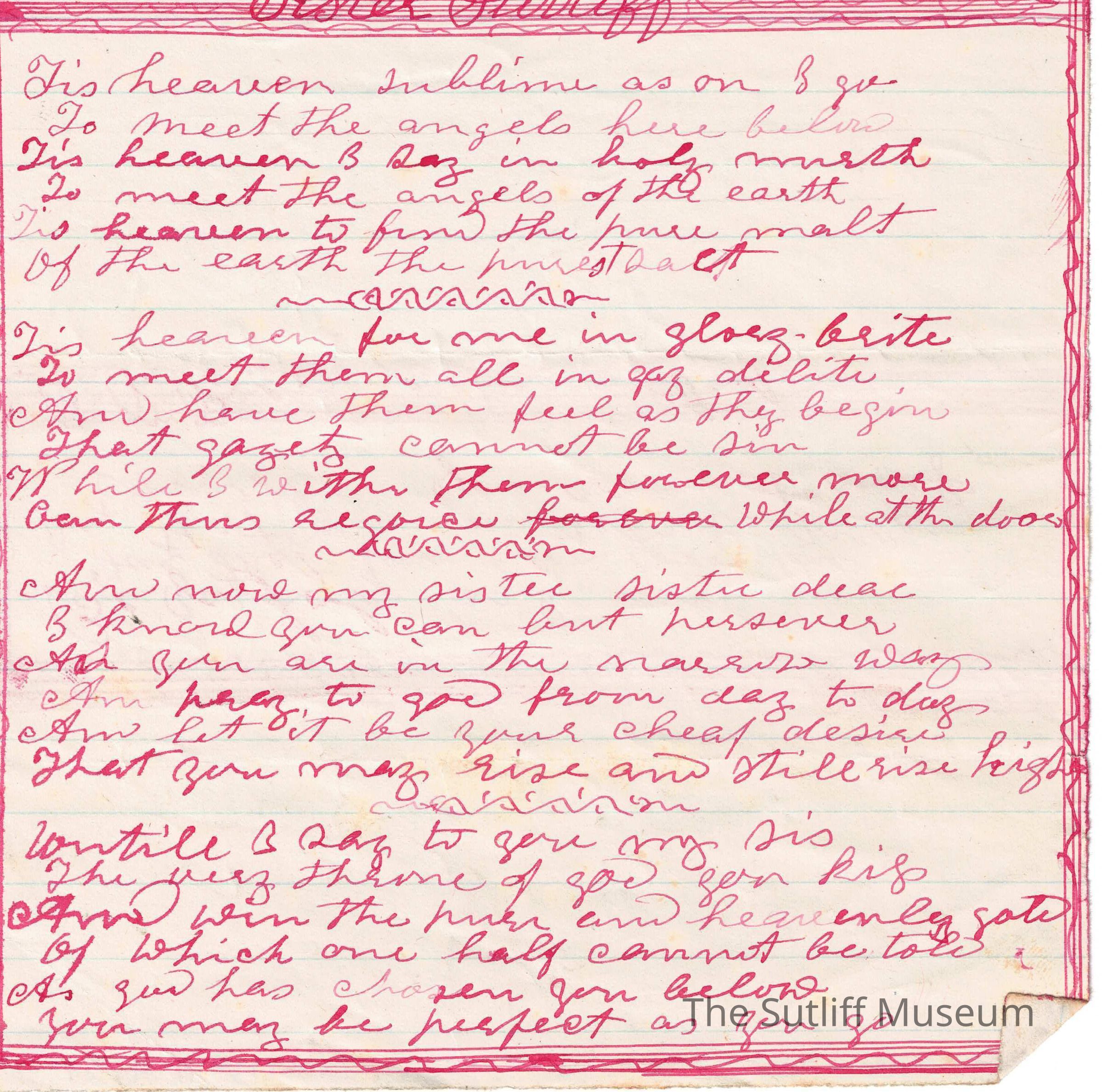 A poem written by Phebe Lord Marvin Sutliff regarding religion.Collection