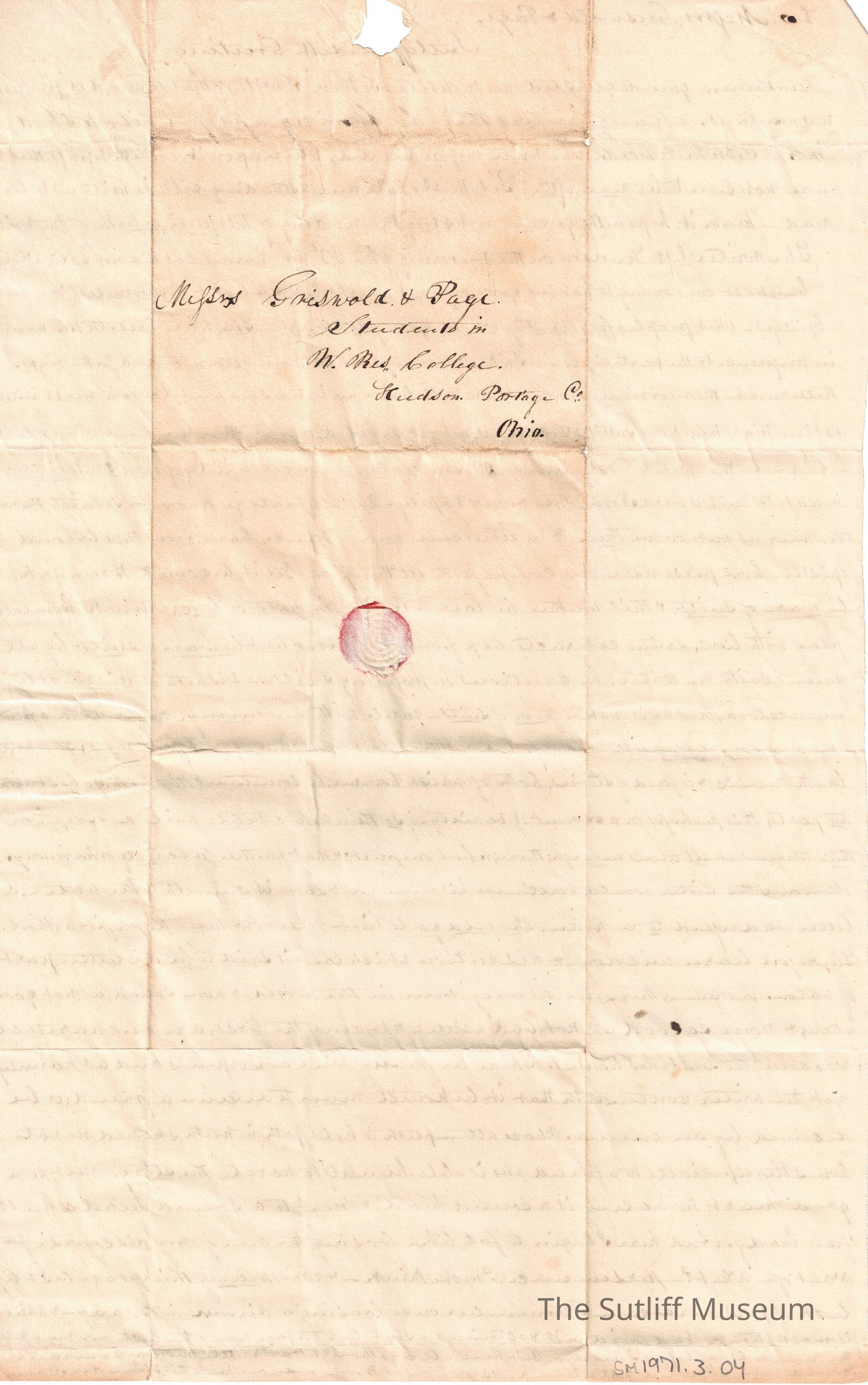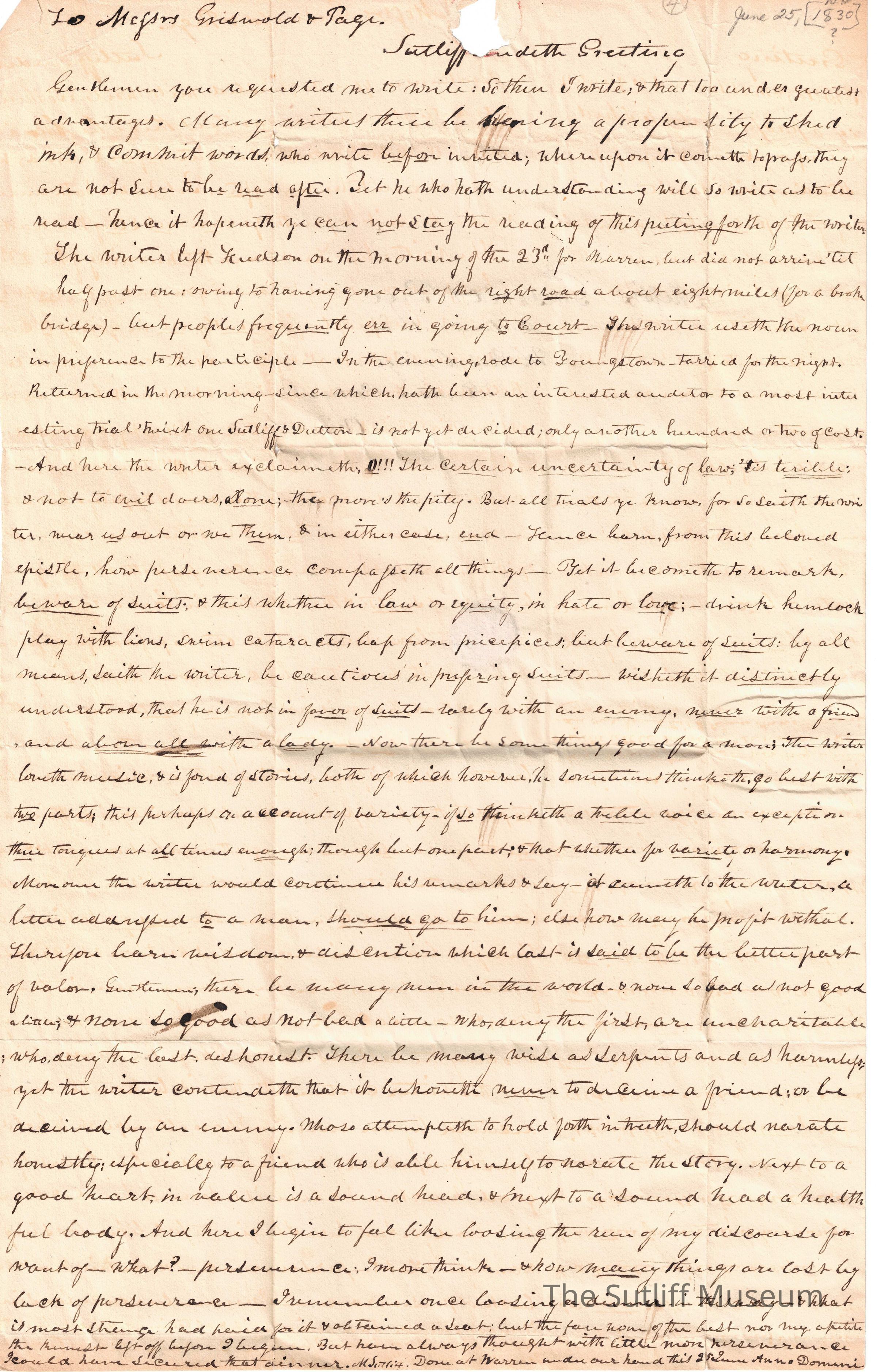 A letter to Messrs. Griswold and Page from Sutliff regarding legal issues.