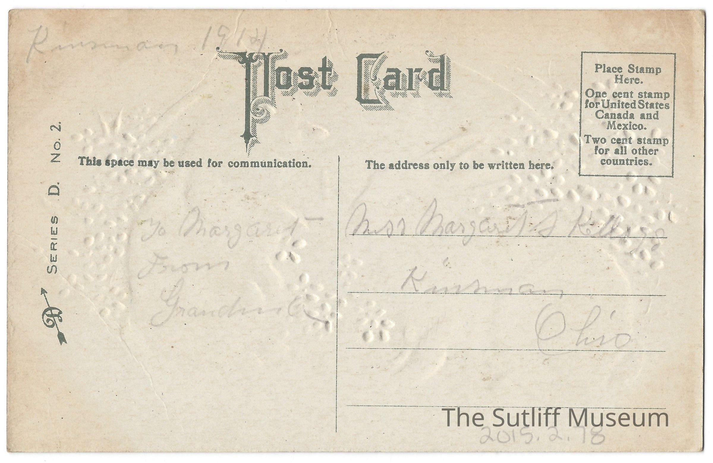 Art, Artifacts, Correspondence/Postcard, Cultural Activities, Domestic Life, Postal Services, People, Social & Personal Activity, Kinsman, Ohio