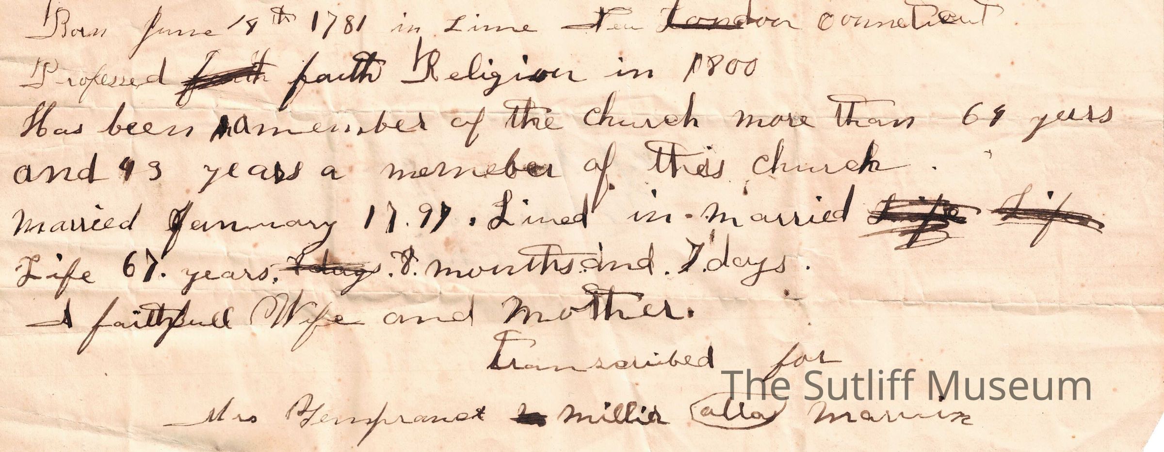 A transcription for Mrs. Temperance Miller alla Marvin regarding a short description of her life.Relationships
