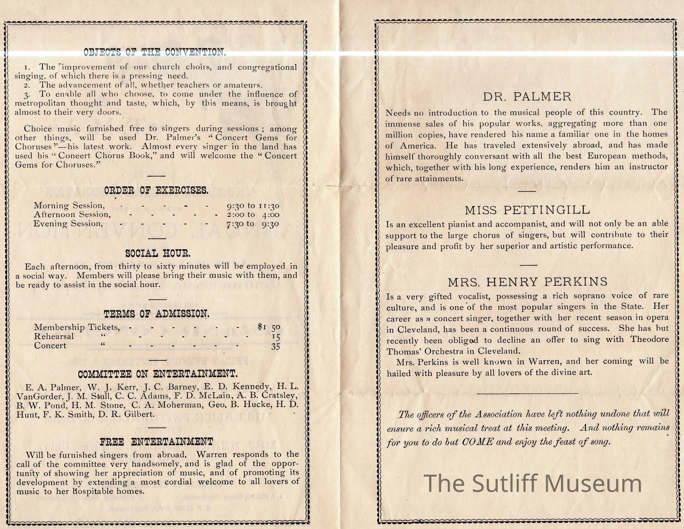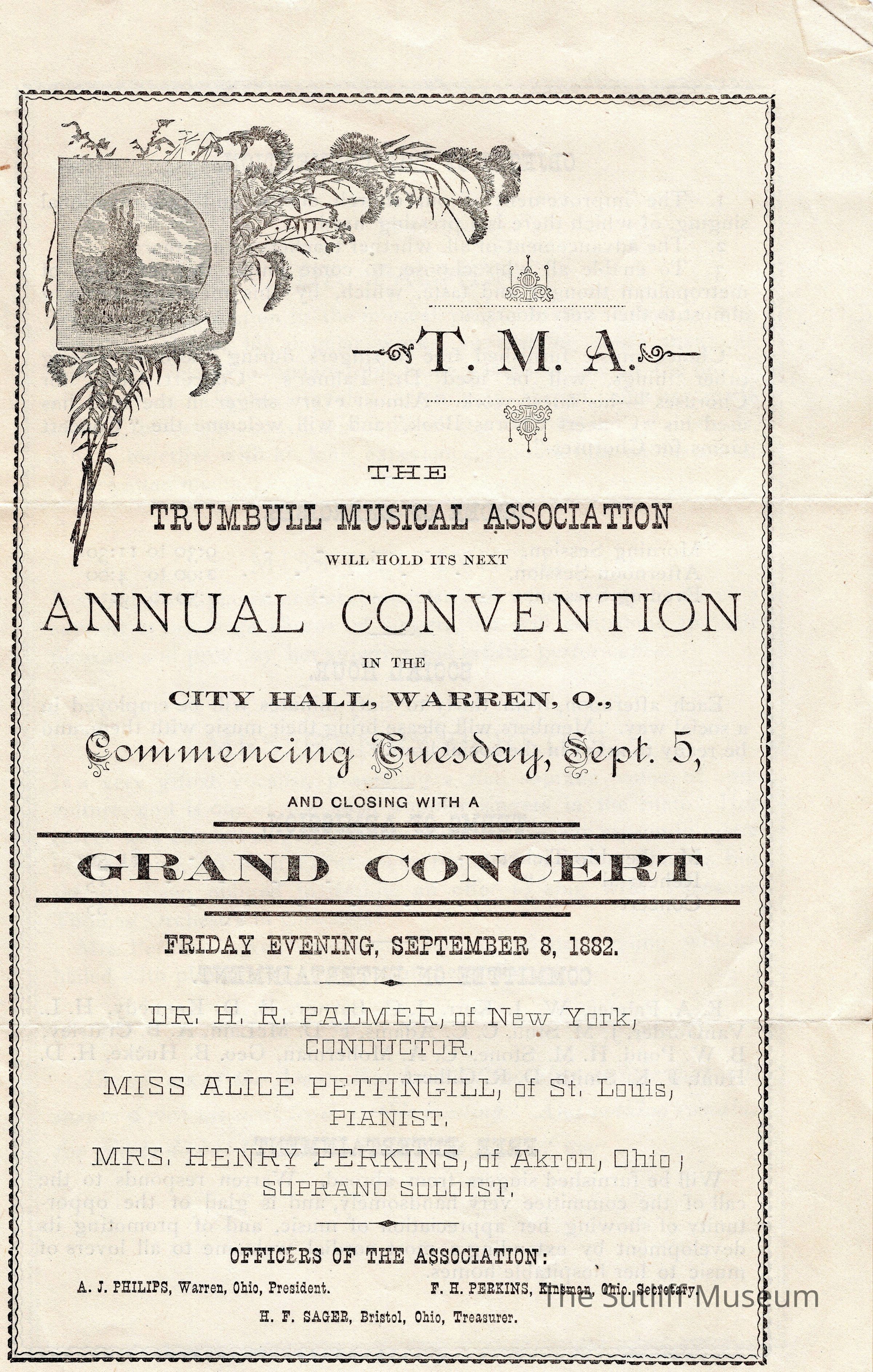 A program for the Trumbull Musical Association's Annual Convention for September 5, 1882.Archive Details