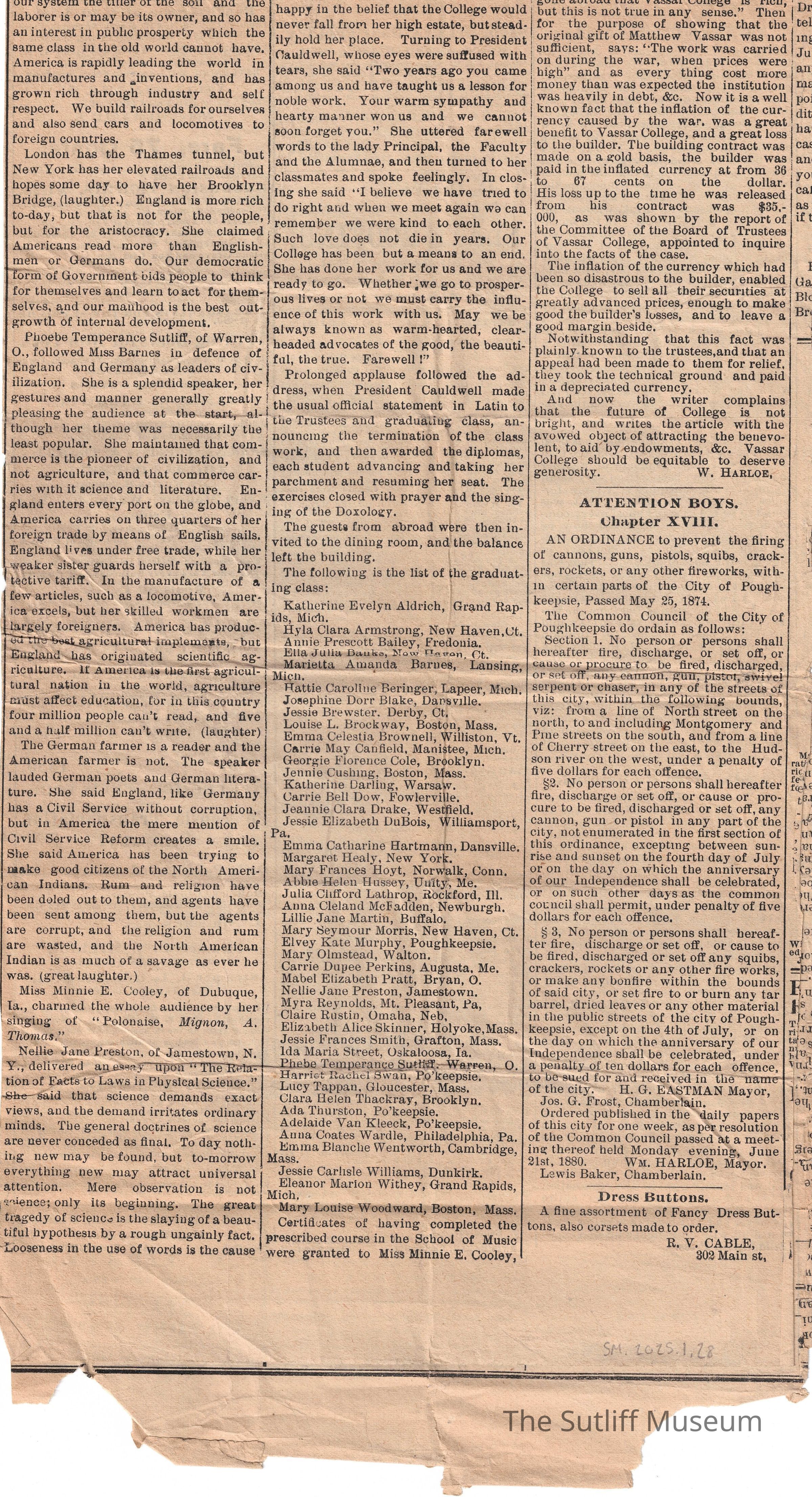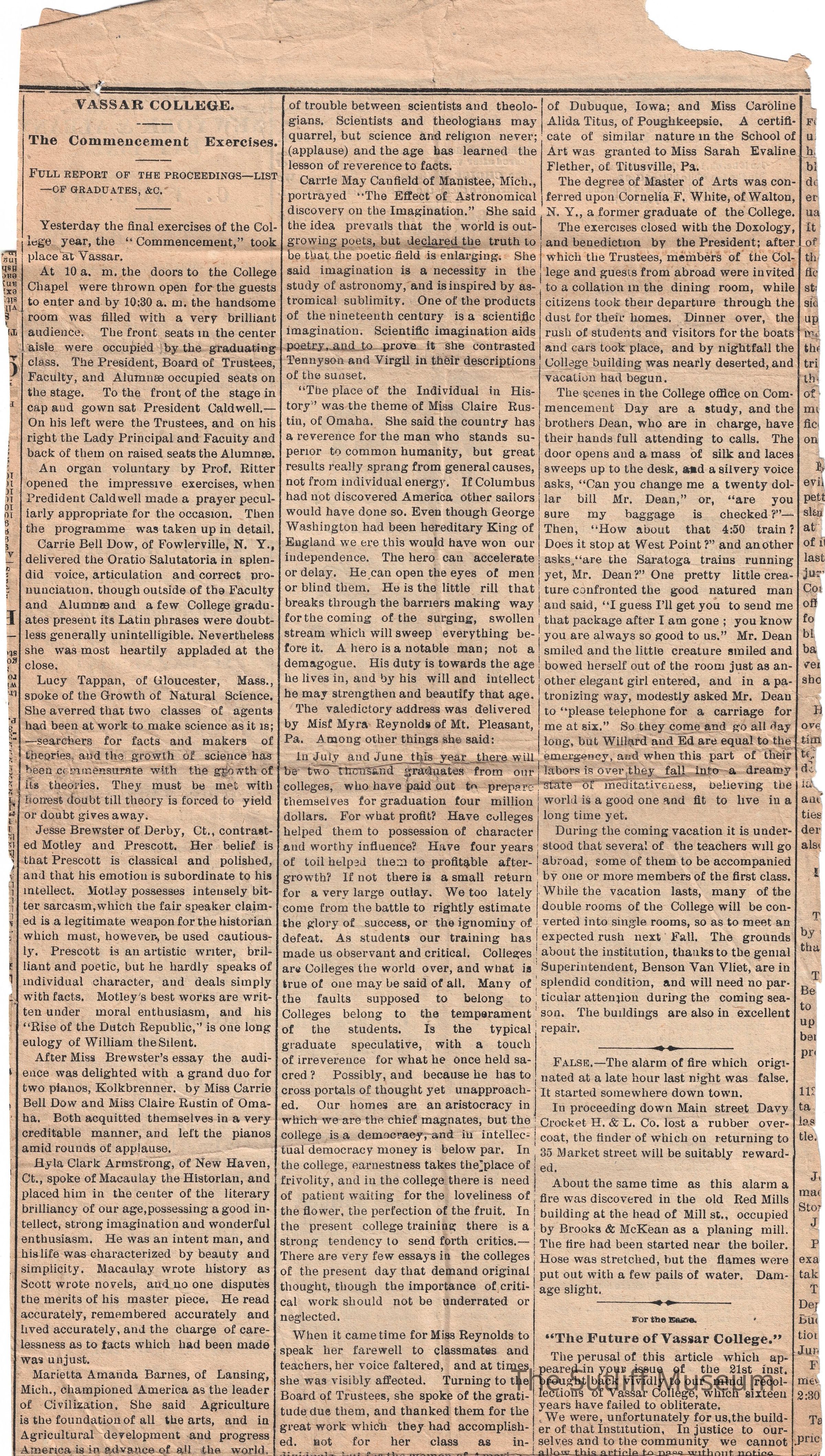 Newspaper on Vassar College Commencement Exercises and various other stories.Relationships