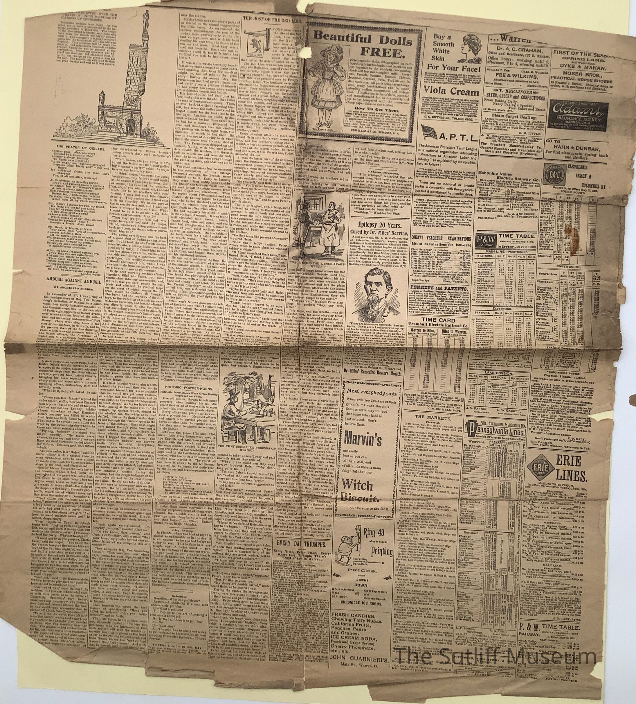 The Warren Daily Chronicle newspaper, undated, single page..Collection