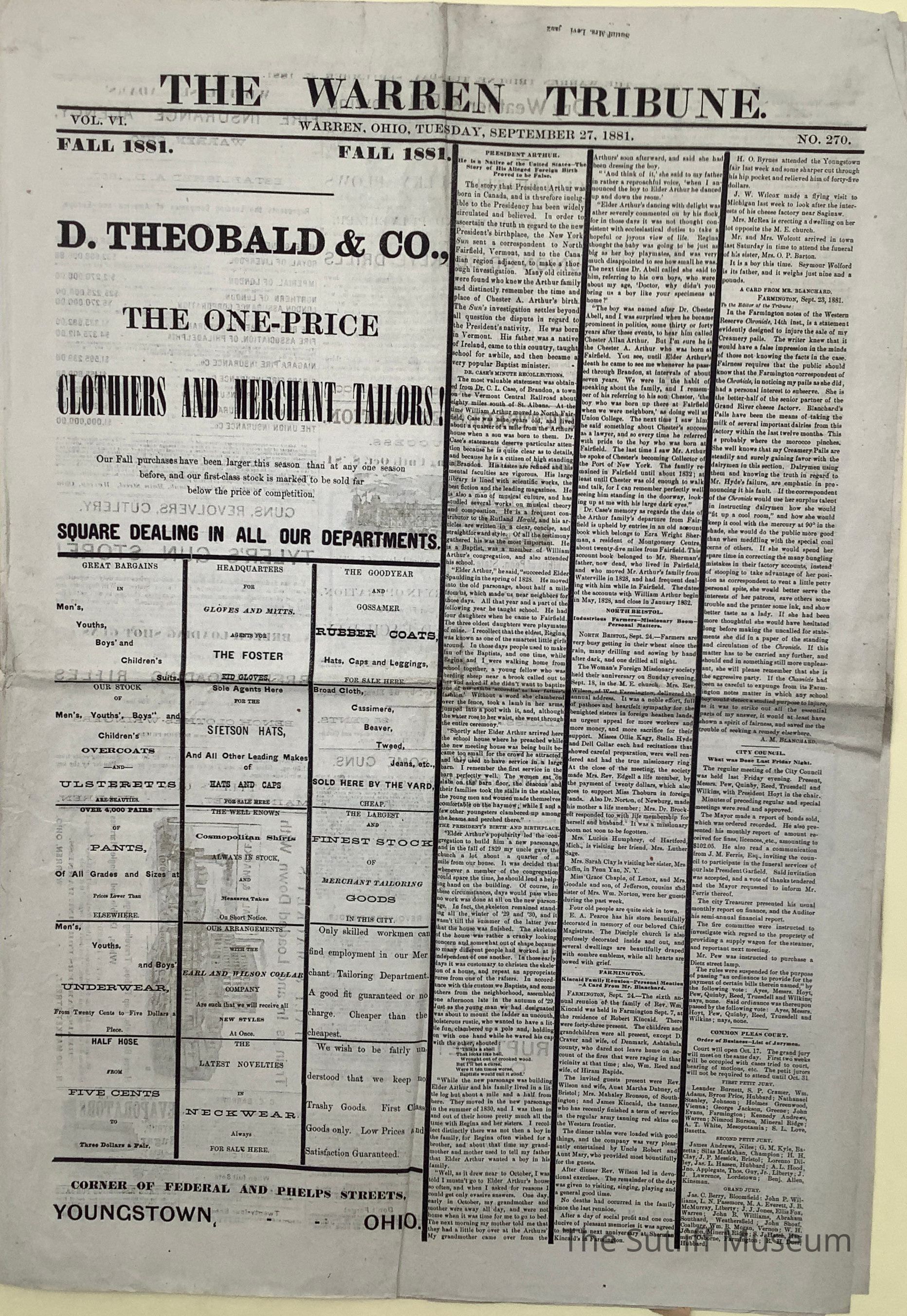 The Warren Tribune newspaper published on September 27, 1881.Collection