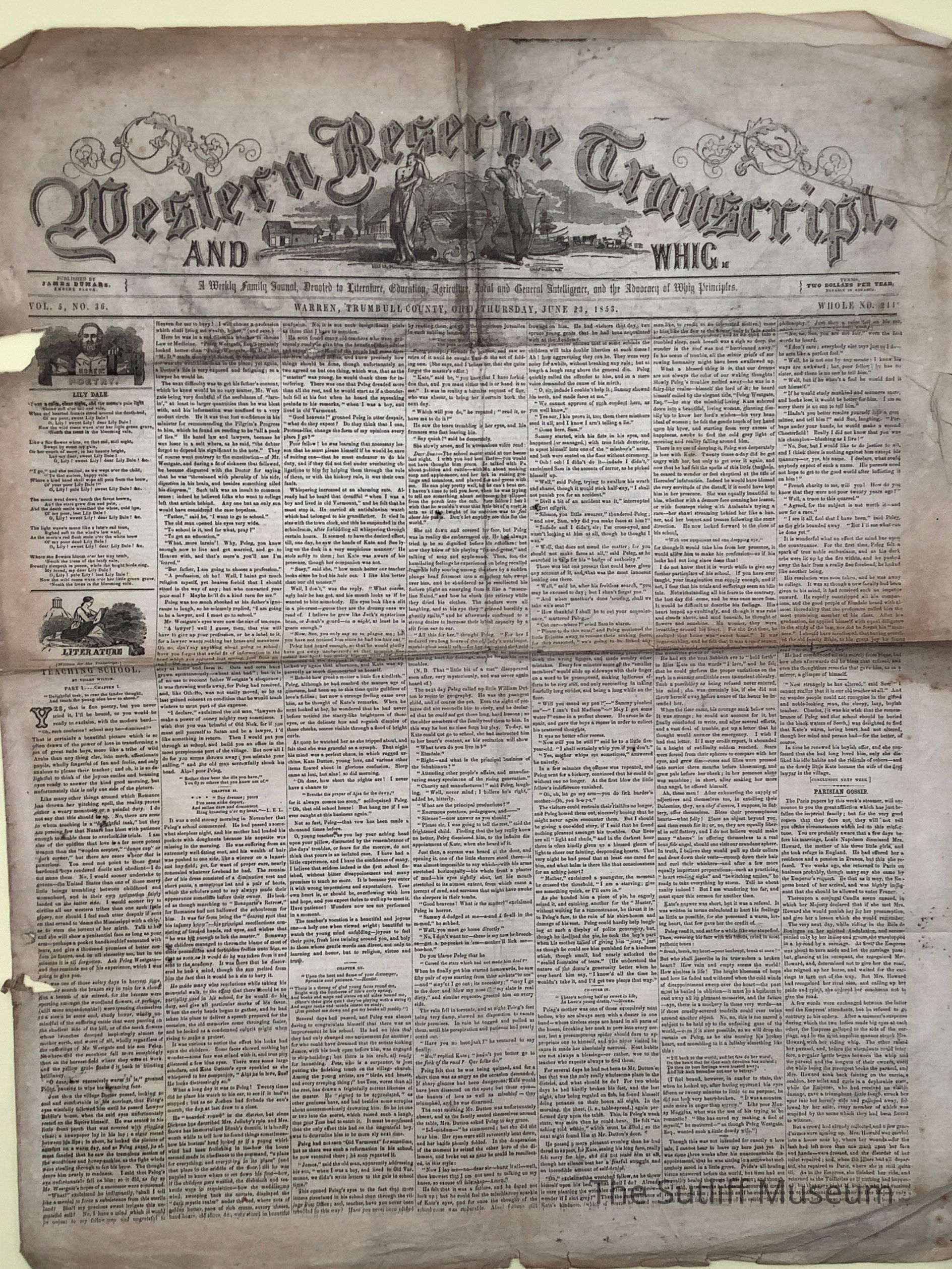 The Western Reserve Transcript newspaper published on June 23, 1853.Relationships