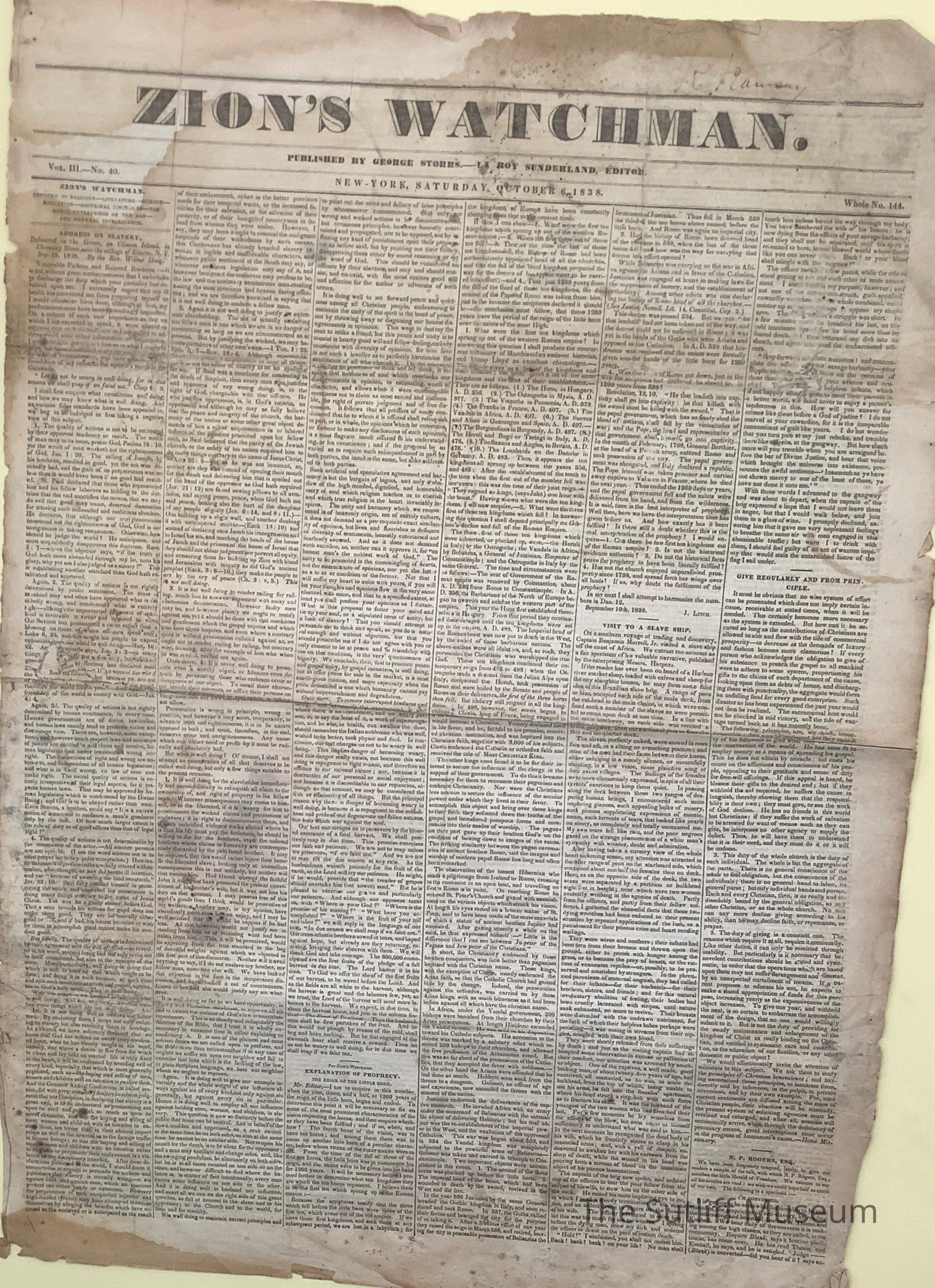 Zion's Watchman Newspaper, published 10/6/1838.