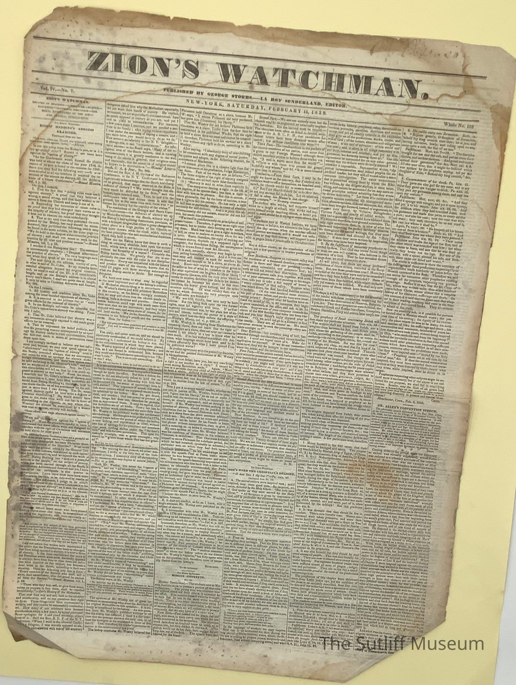 Zion's Watchman Newspaper, published 2/16/1839