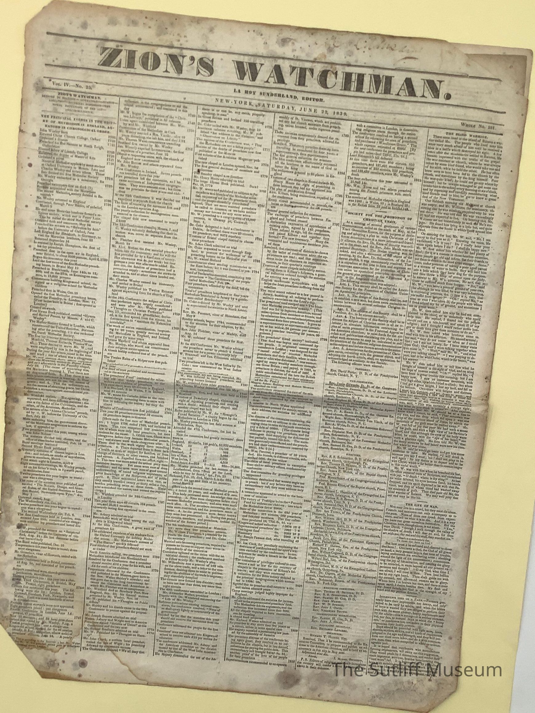 Zion's Watchman Newspaper, published 6/22/1839