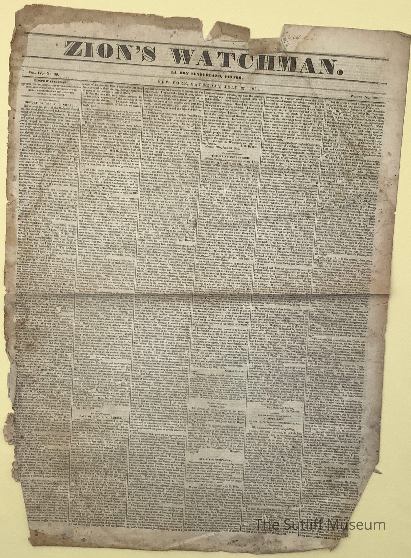 Zion's Watchman Newspaper, published 7/27/1839