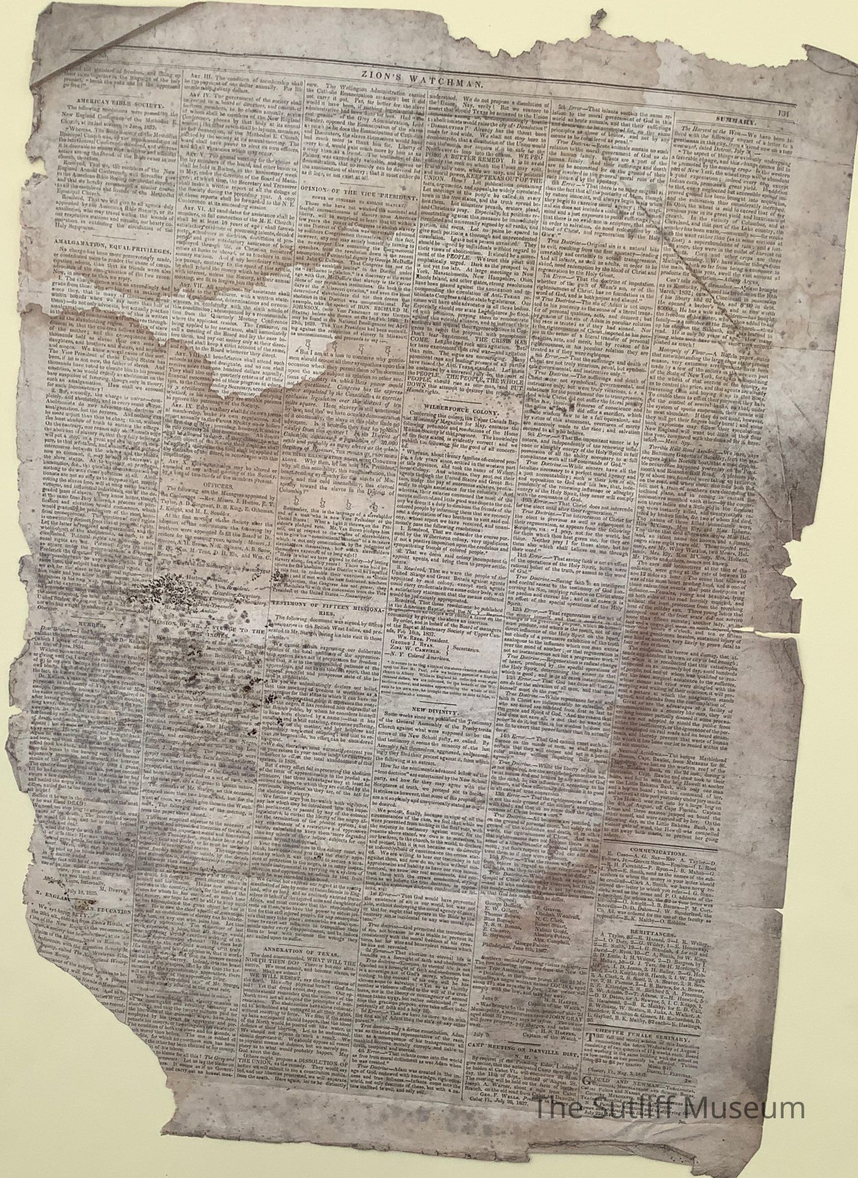 Zion's Watchman Newspaper, published 8/19/1837