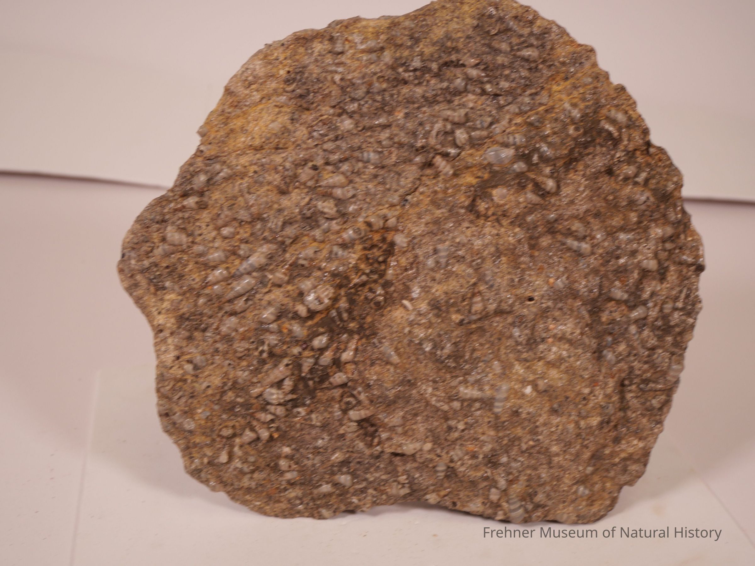 Multiple gastropods and bivalves in slab