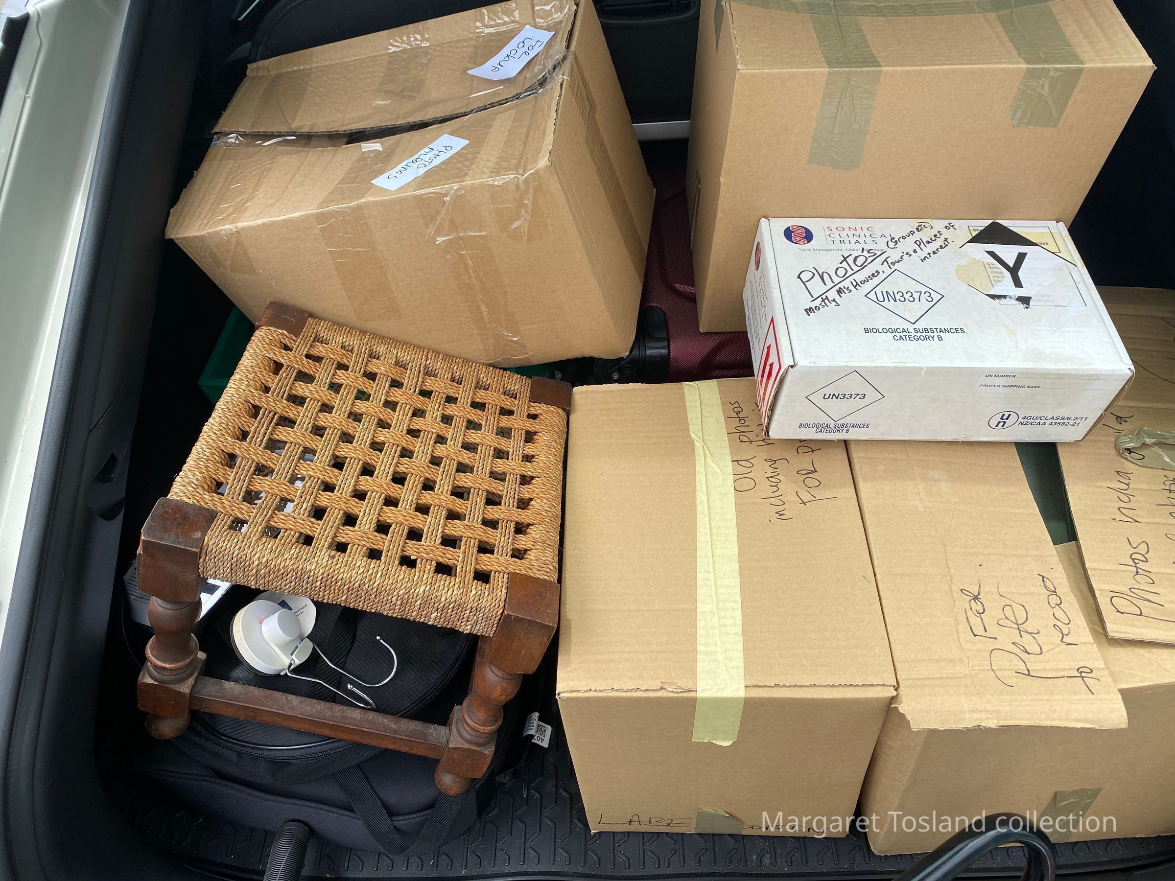 Suitcase plus 4 large boxes and 1 smaller box (all unopened)