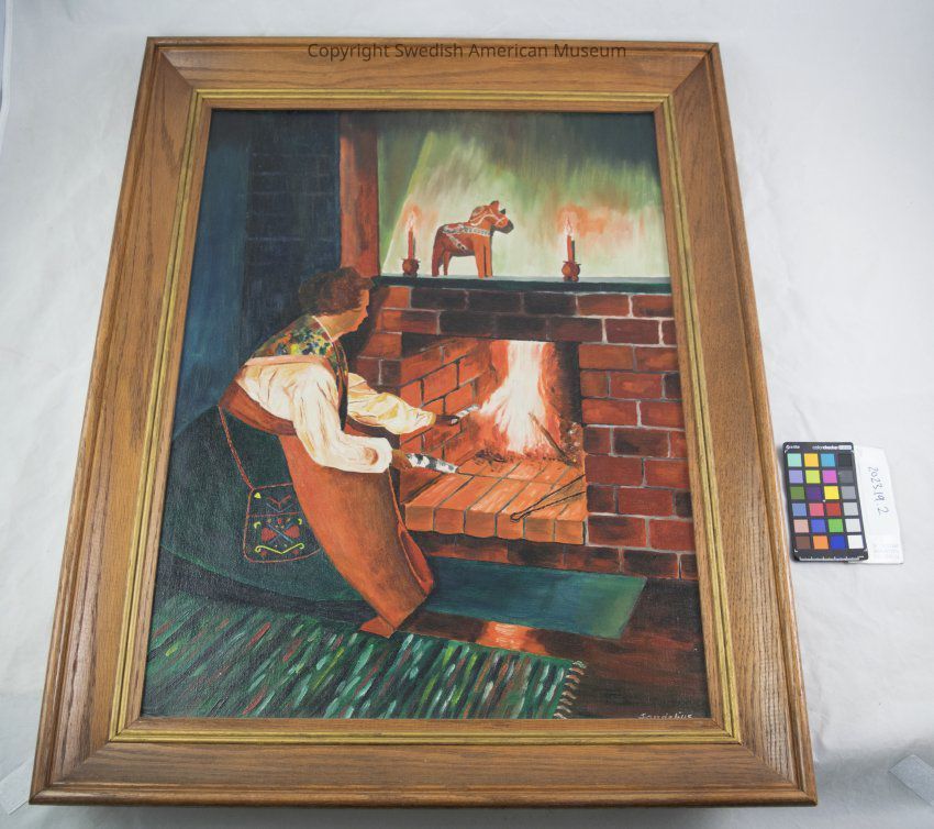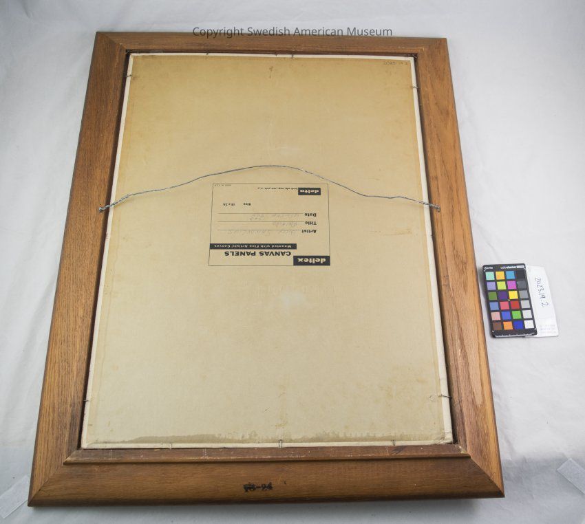 Sandelius was born in Gröndal, Stockholm, Sweden in 1930. He first came over to Andersonville in 1949, when he was only 19 years old. He stayed with an uncle, also from Sweden, and learned English at Lakeview High School. During the Korean War, he enlisted in the US Army and was granted citizenship. He was then stationed in France, where many of the soldiers frequented a café in a small Lorraine town. It was here he met a waitress, his future wife, Evelyne. A few years after the war, the couple got married in 1957 and moved back to Stockholm. However, Andersonville became their permanent home in 1963. A bricklayer by trade, Sandelius attended The Famous Artists School, a mail in art course program. He made several oil paintings over the 60’s and 70’s, taking reference from post cards and even created master copies. In 2015, he created his last painting, a scene of Evelyne standing in front of the café they met at many years ago. That same year, many of his works were in an exhibition at the Swedish American Museum. Sandelius lived on the same Andersonville block until his passing in March of 2019, with his house now occupied by his grandchildren.Acquisition