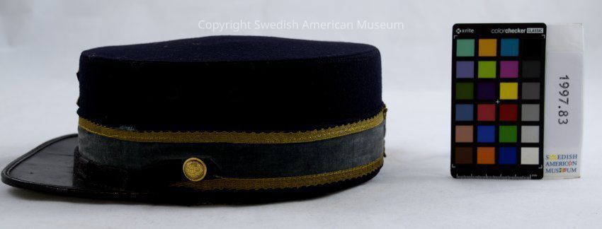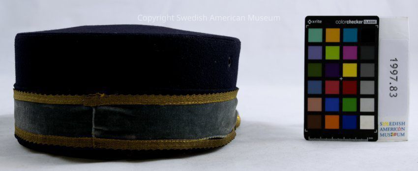 Hat owned by donor's father Leonard Larson, member of Balder Lodge No. 12, Independent Order of Svithiod. Owner's father's name printed on sweat band - Leonard Larson, 2141 N. LaVergne Ave., Chicago, Ill. Balder Lodge No. 12.