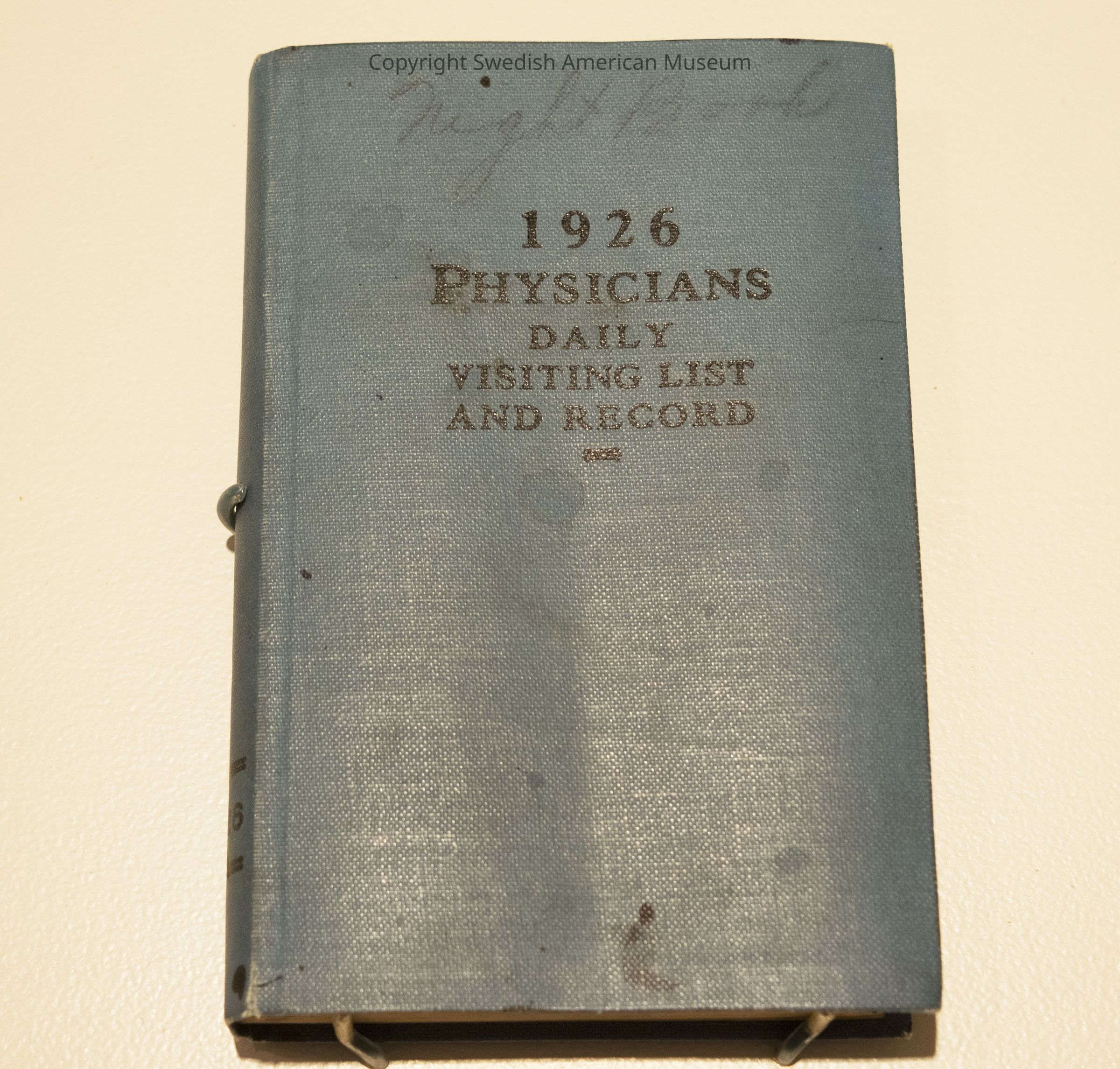 Log book titled "Physician's Daily Visiting List and Record." The log lists each patient the doctor saw, the fee for the visit, and amount paid.Acquisition