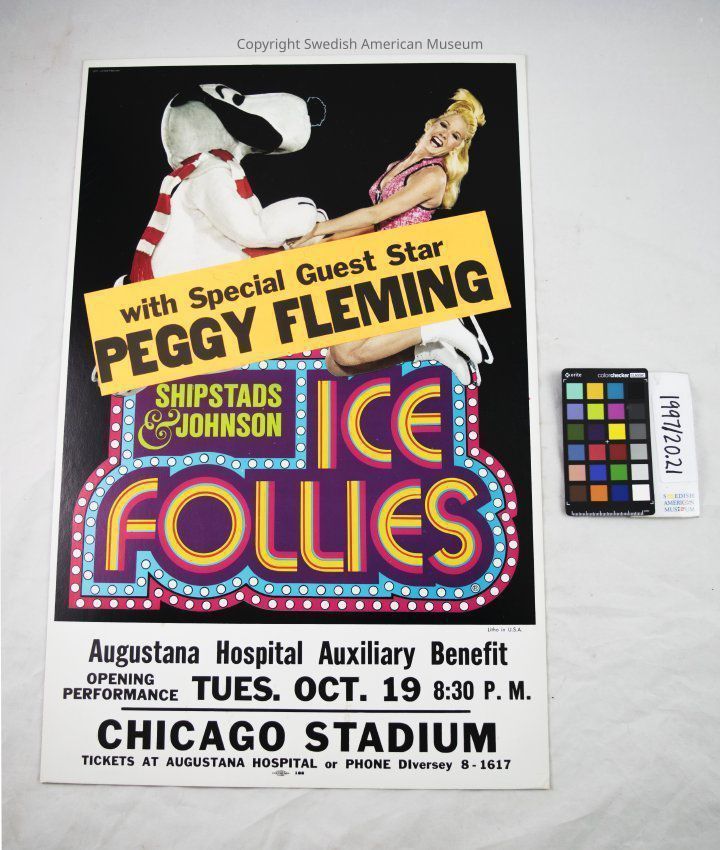 Poster advertisement for Shipstads & Johnson "Ice Follies" benefit event for the Augustana Hospital, 1971.