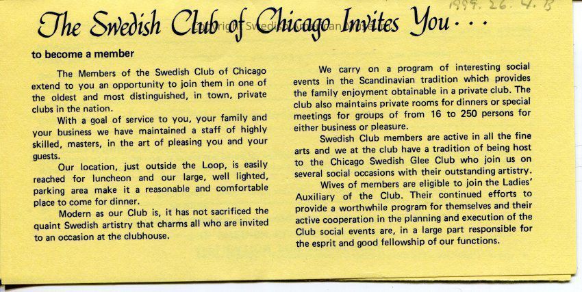 Associations, institutions, etc.--Membership, Swedish Club of Chicago