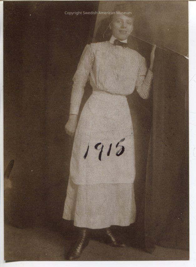 Photograph of Gunhild Anna Charlotte Malm Erickson as a maid in 1915.Context