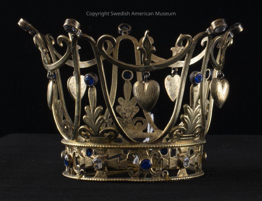 Traditionally, a crown would be worn by a Swedish bride during her wedding ceremony as a reminder of her status as royalty on her wedding day. The tradition goes back to the Middle Ages with its roots in Catholic customs. A bride wearing the crown did so in the image of the Virgin Mary, and the crown itself became an image of virginity. Brides wearing the crowns were expected to be virgins on their wedding day. Beautiful and ornate bridal crowns were often available on loan from the local parish, but women would also make them themselves using straw, fabric or other materials. There are many legends and traditions surrounding the Swedish bridal crown or "Brudkrona."Acquisition