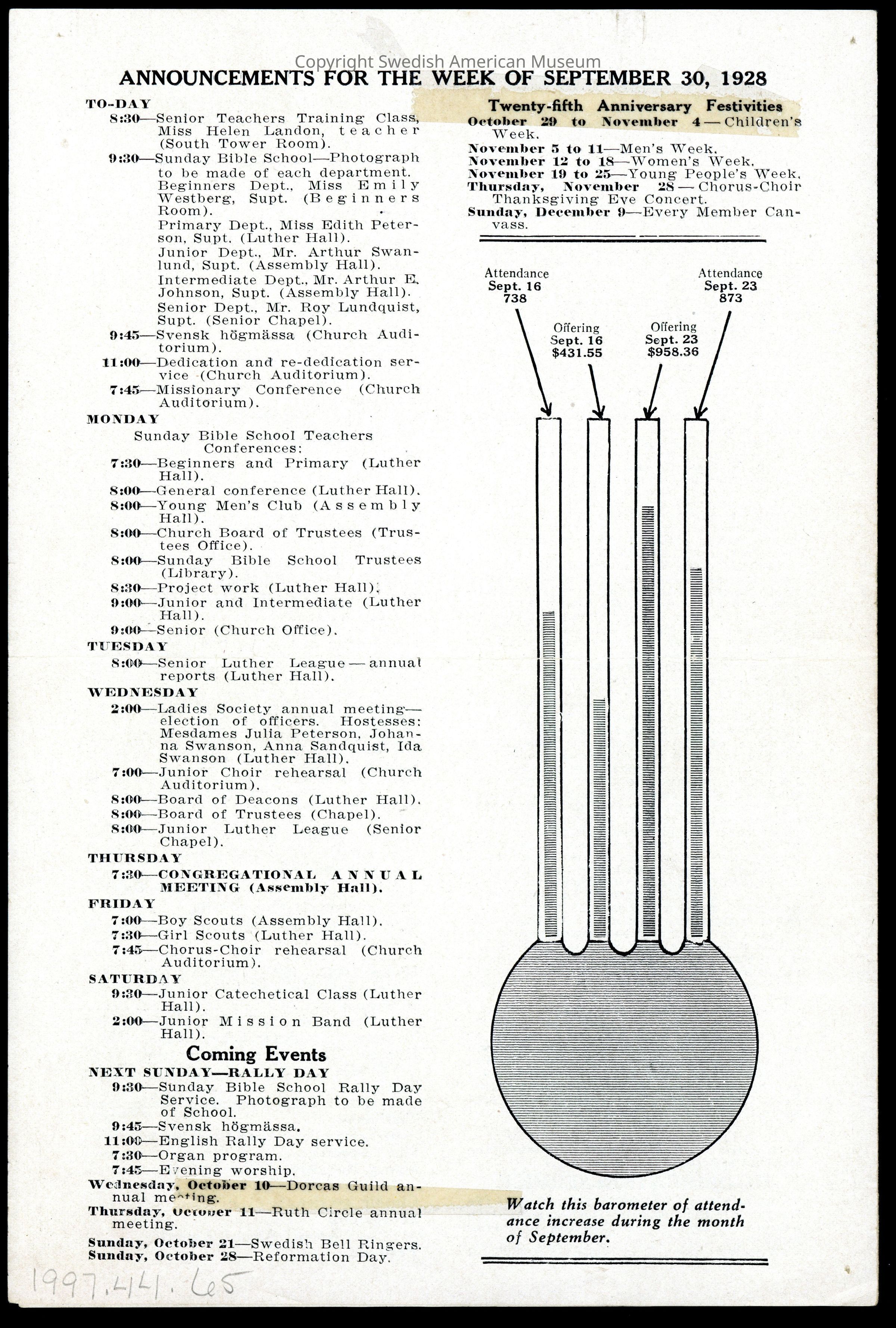 Certain works may be protected by copyright not governed by the Swedish American Museum.