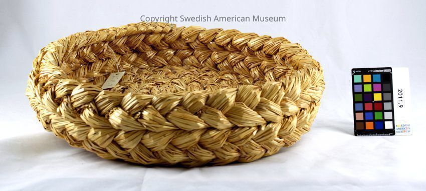 The basket was made by Mrs. Barbro Svensson for Halmens Hus in Bengtsfors, Sweden. Svensson is a third-generation straw craftswoman from Flatan in Ärtemark, Dalsland. The straw that's used for the basket is made from an older type of rye that's made to grow on burnt soil and that's produced today by very few farmers, mainly for straw-craft.Acquisition