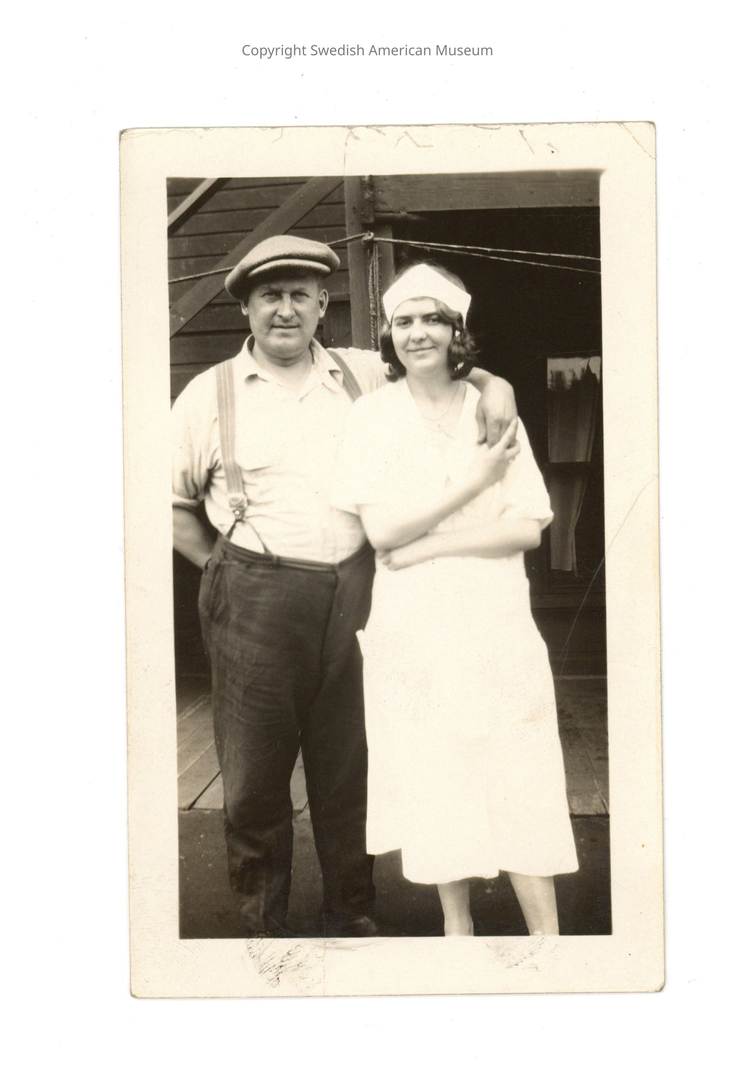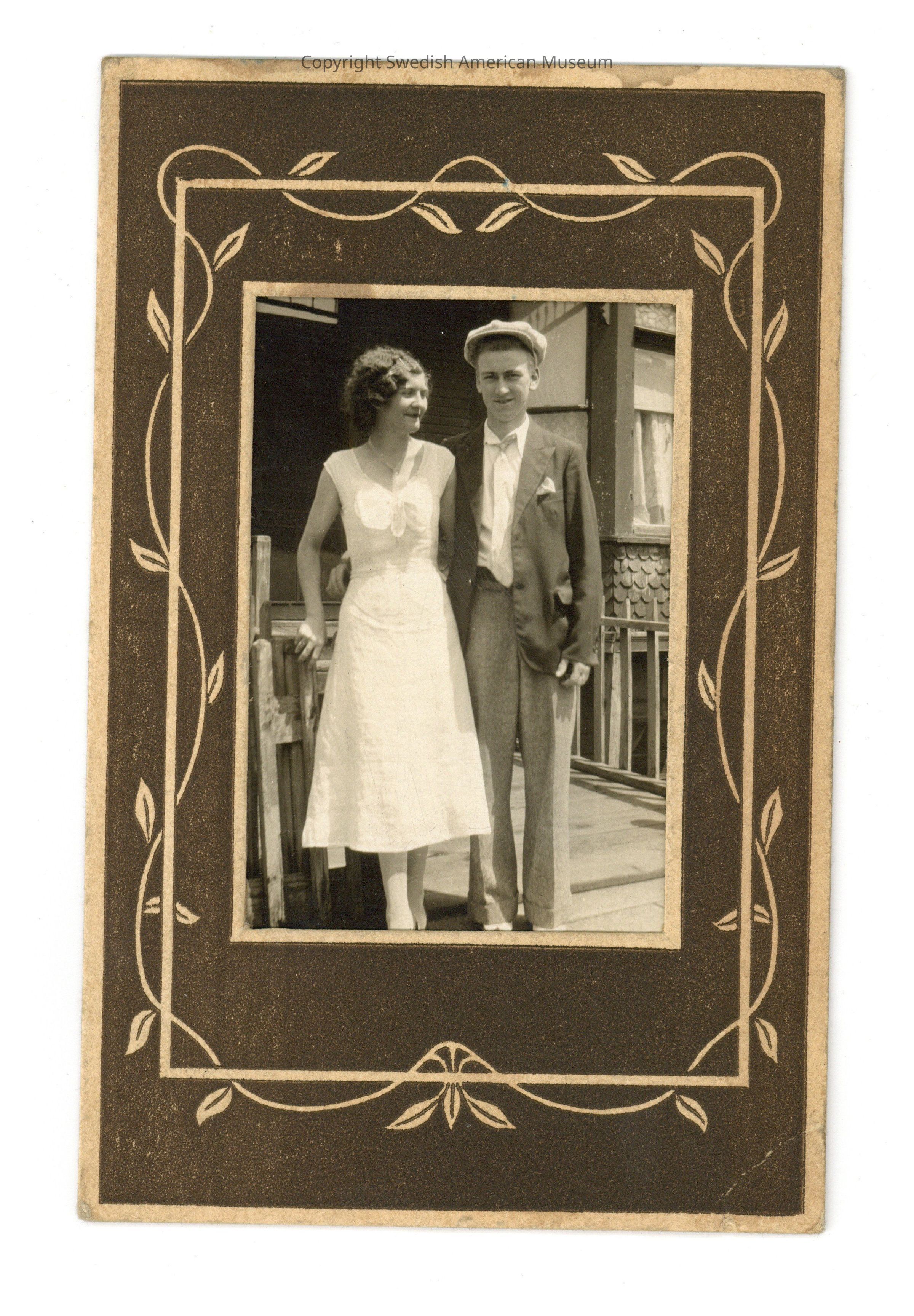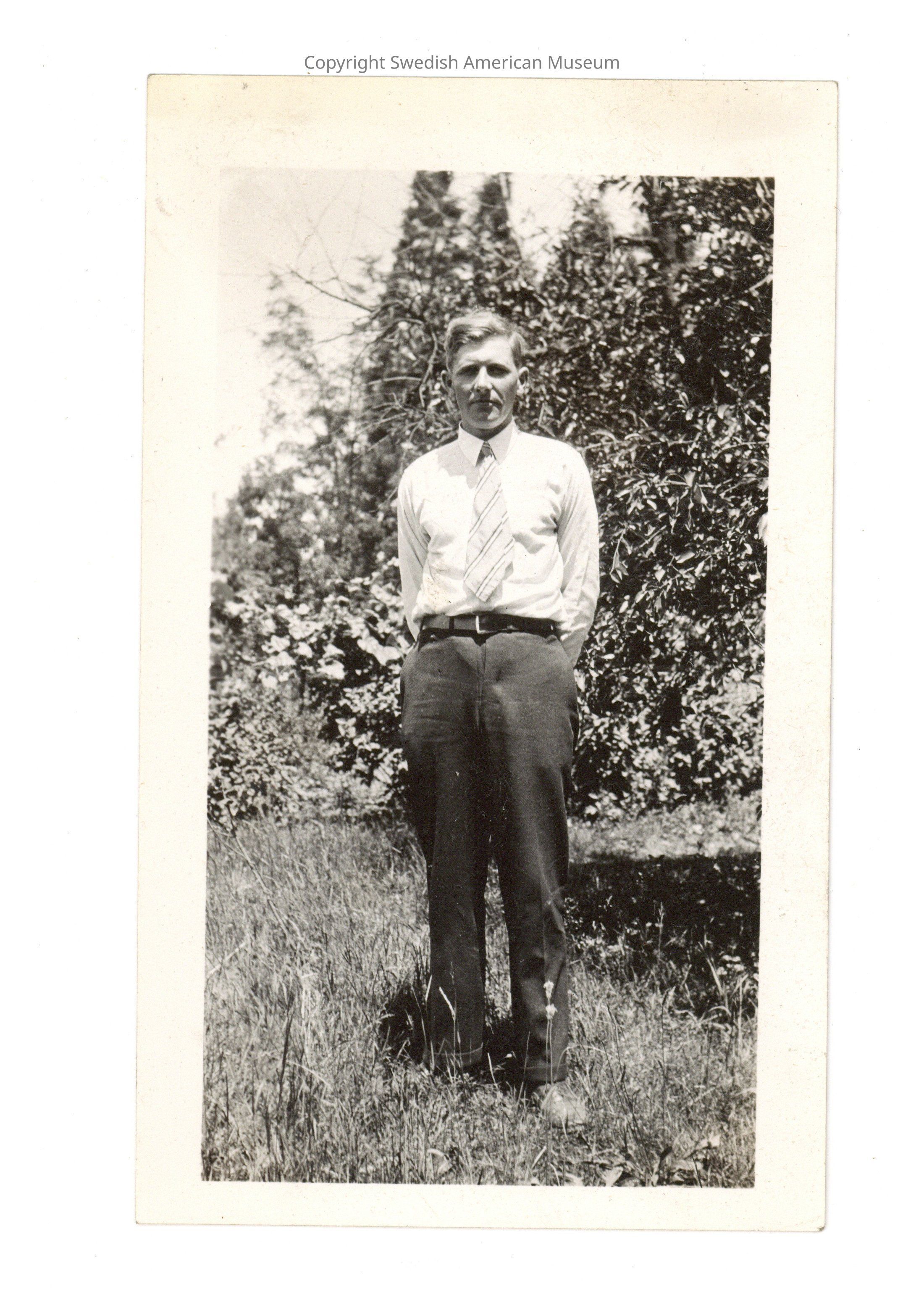 Nilssen moved to Chicago sometime in the late 1920s. There is evidence that he found work at Chicago's Interstate Iron and Steel Company in the early 30s. On March 21 1932, he married Marie J. Anderson in Chester, Illinois; Anderson, an immigrant from Gotland, Sweden, was twice previously married and had two children from her first marriage. The photographs found in this collection show the blended family living together on the South Shore of Chicago in a large house with a garden and several dogs.