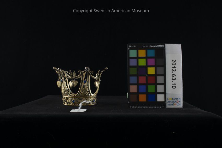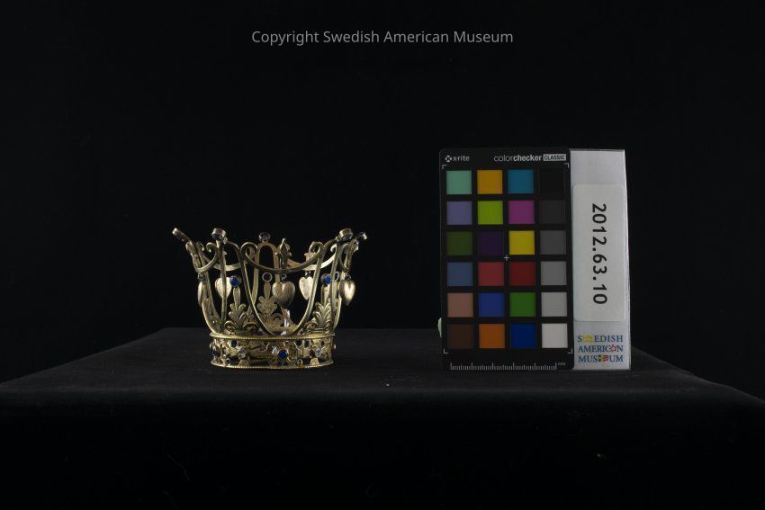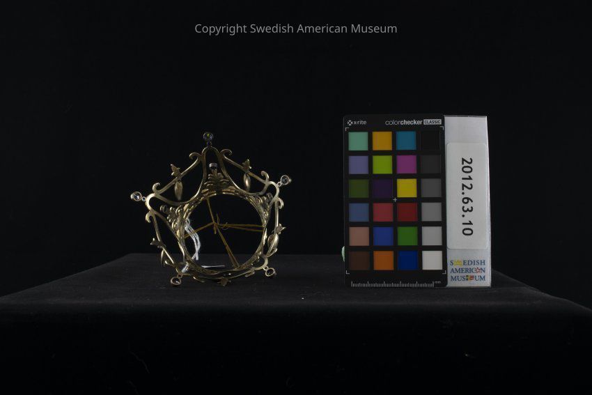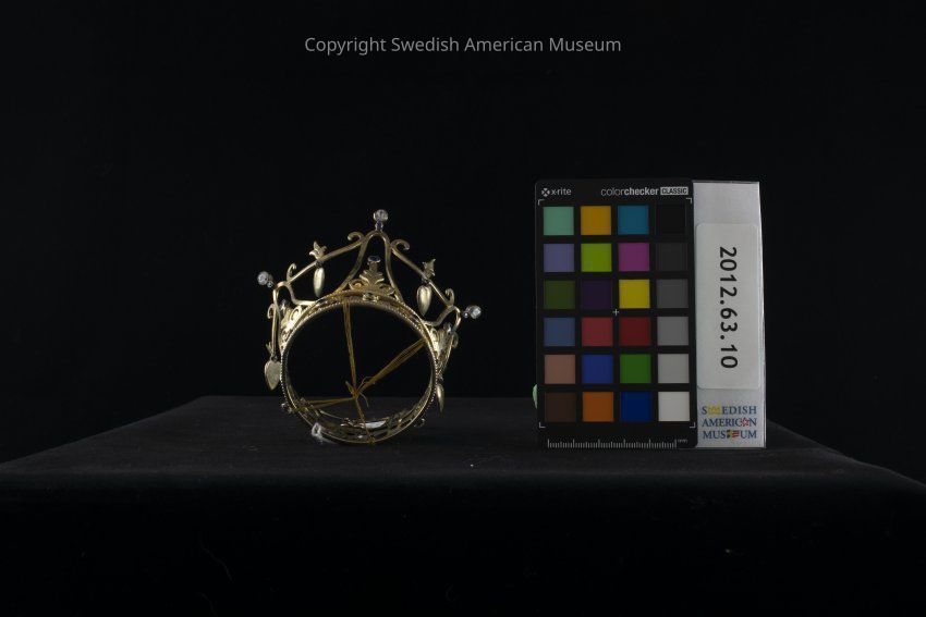 Traditionally, a crown would be worn by a Swedish bride during her wedding ceremony as a reminder of her status as royalty on her wedding day. The tradition goes back to the Middle Ages with its roots in Catholic customs. A bride wearing the crown did so in the image of the Virgin Mary, and the crown itself became an image of virginity. Brides wearing the crowns were expected to be virgins on their wedding day. Beautiful and ornate bridal crowns were often available on loan from the local parish, but women would also make them themselves using straw, fabric or other materials. There are many legends and traditions surrounding the Swedish bridal crown or "Brudkrona."Acquisition