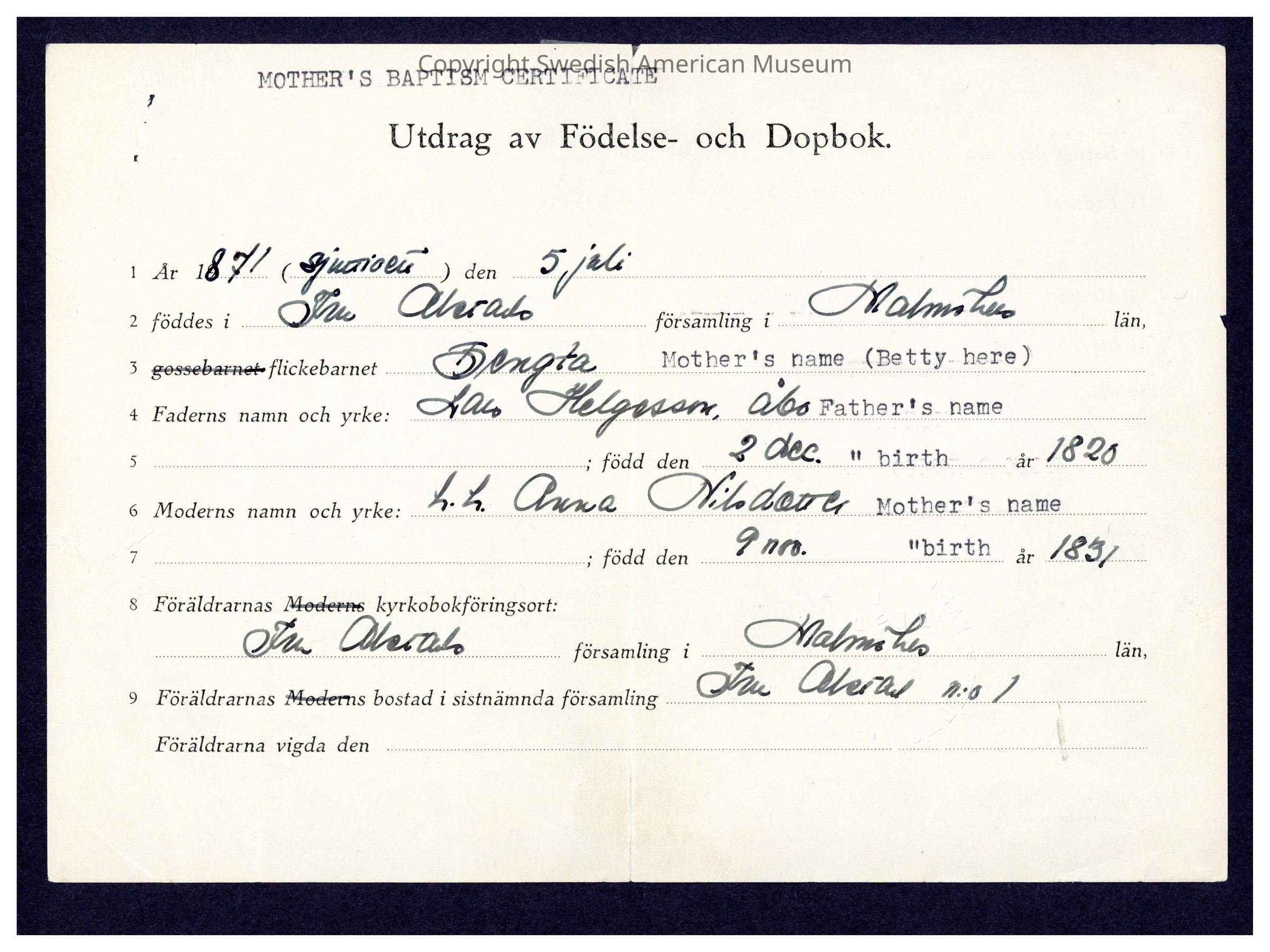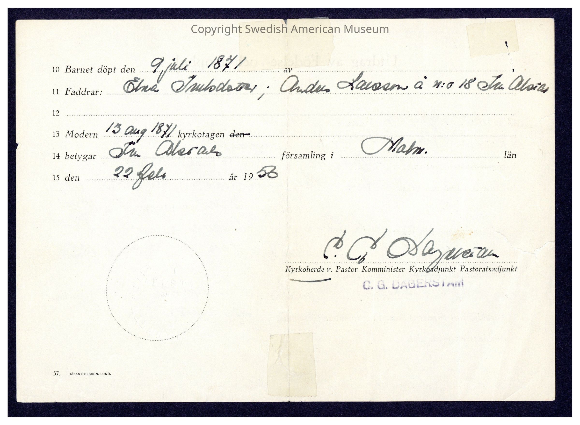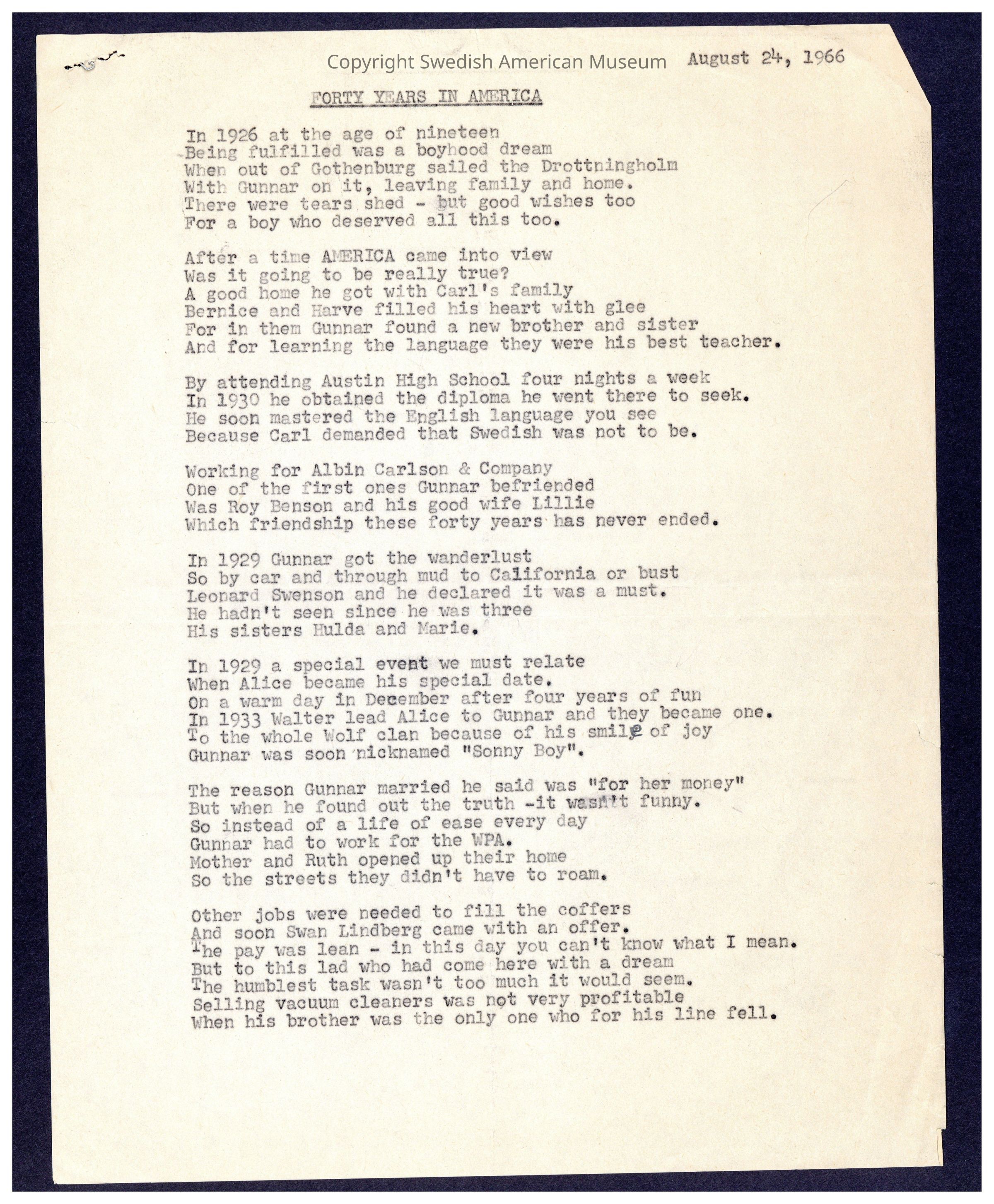 Certain works may be protected by copyright not governed by the Swedish American Museum.Reproductions