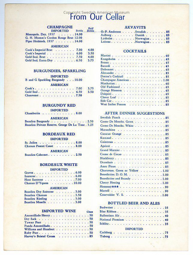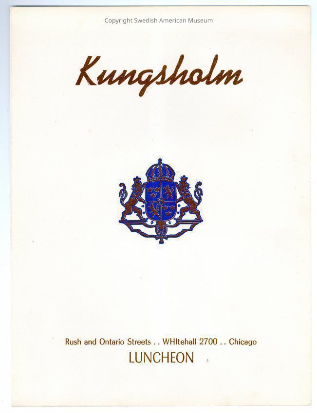 Two menus from the Kungsholm Restaurant on Chicago's Near North side. The restaurant flourished from 1937 until its closing in 1971. It was accompanied by a puppet theater which enabled customers to view performances while they were eating.Context