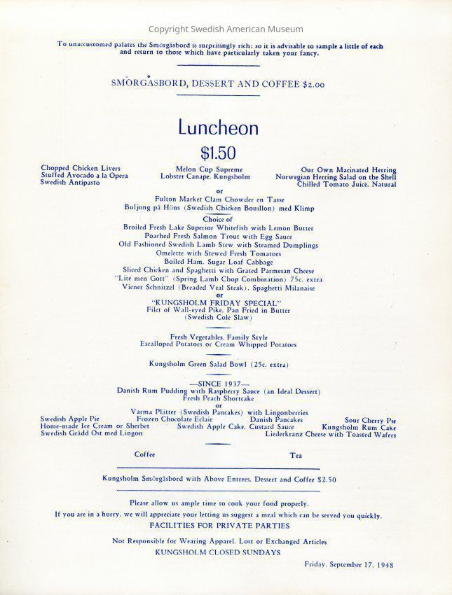 Kungsholm Scandinavian RestaurantDate(s) of Creation