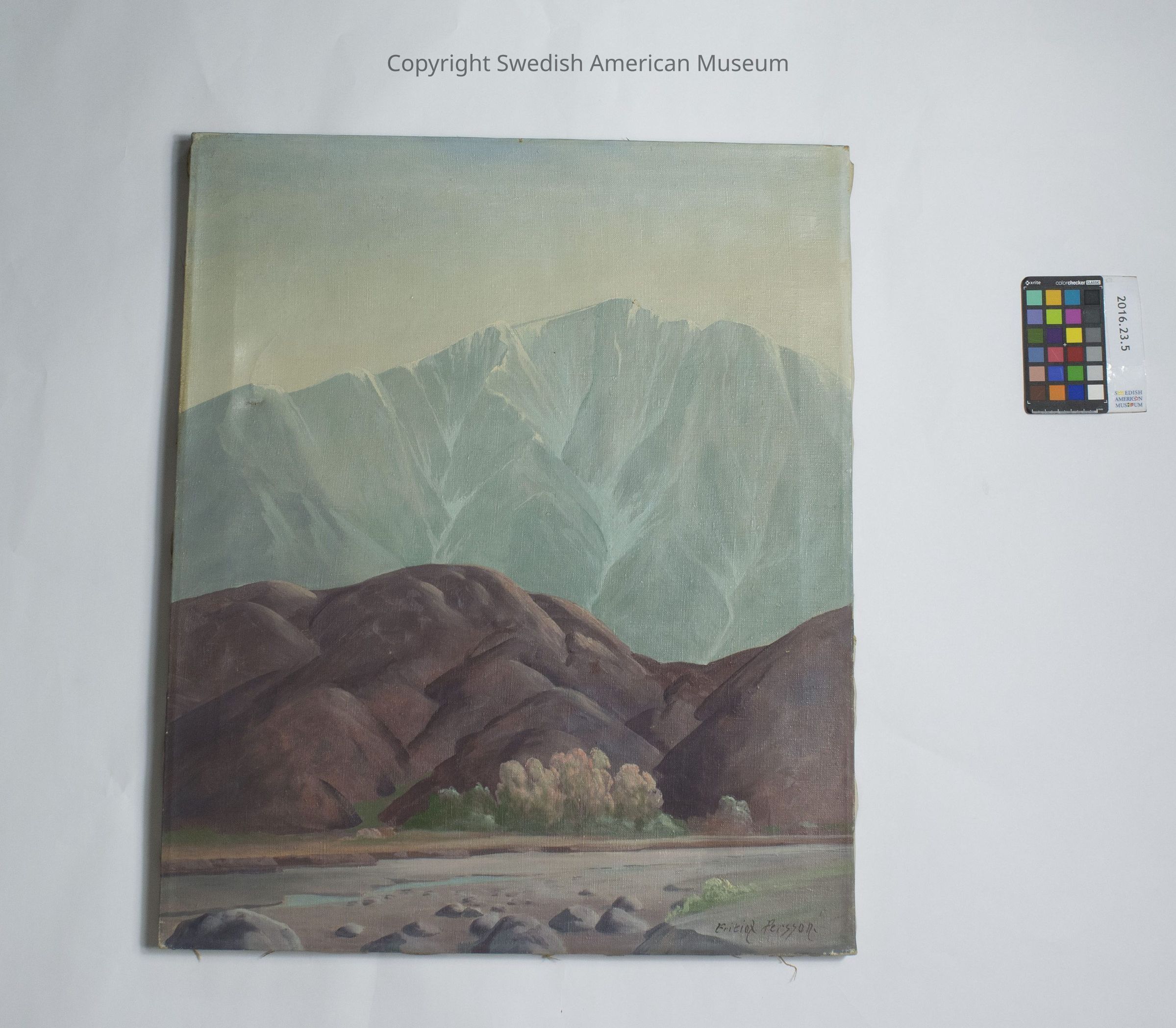 Fritiof Persson was a Swedish artist born in 1897. He immigrated to the United States after serving in the Canadian Army in WWI. After studying at the Art Students League of New York, he moved to Los Angeles around 1930. He became known for his desert landscape paintings of the Mojave of Colorado deserts. He passed away in San Bernardino, CA in 1957 due to a gastric ulcer. Persson exhibited at the Scandinavian-American Art Society in 1939.Acquisition