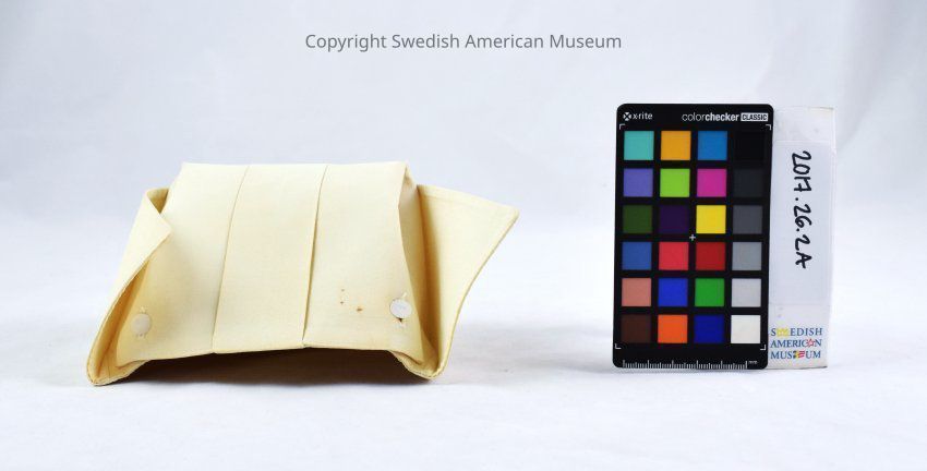 Nurse's cap part of an Augustana Student Nurse Uniform. Off-white with an upper section which is divided into three parts on the outer side and two white buttons, one of which is at the back left end of the outer side, one of which is at the back right end of the outer side, and both of which can go through corresponding inserts in the main part of the item.Context