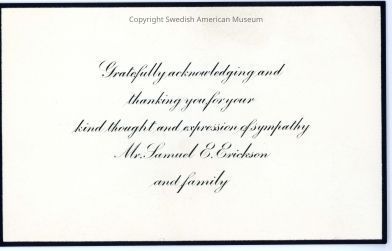 Sympathy card for Samuel Erickson, 1924.
