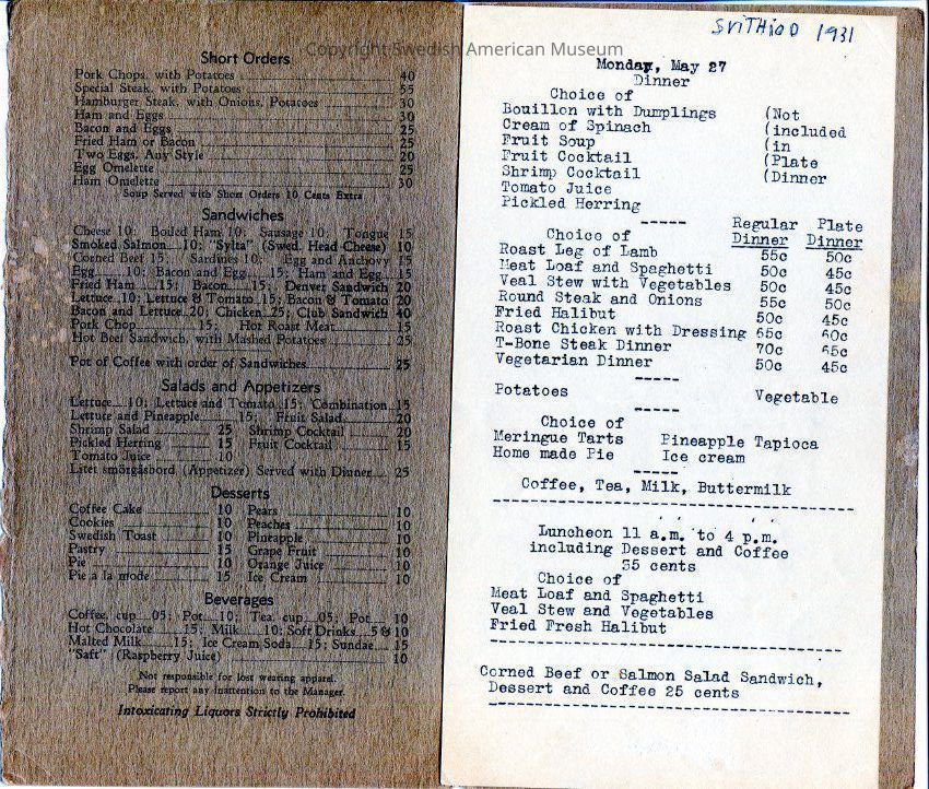 Brown-covered menu for the restaurant Cafe Idrott in Chicago, Illinois. The menu was published in Chicago by the System Press.Context