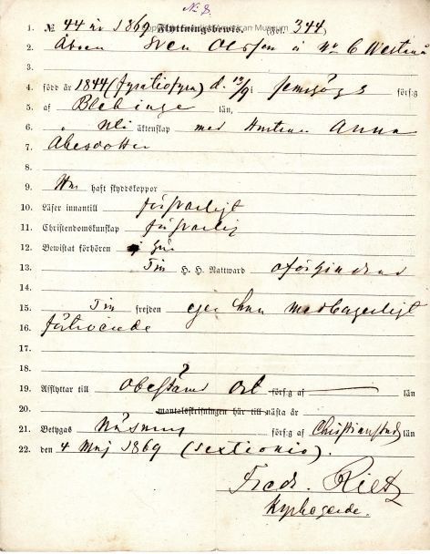 Associated with Sven A-- and wife Anna Abesdotter(?). Signed by -- Ries.