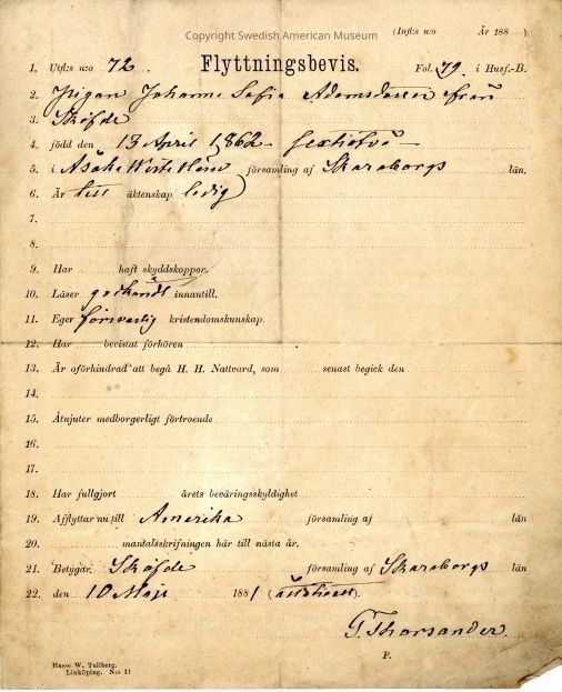 Associated with Johanna Sofia Andersdotter, maid.Acquisition