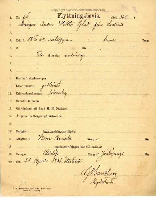 Certificate from Gethsemane Church, 1881.Context