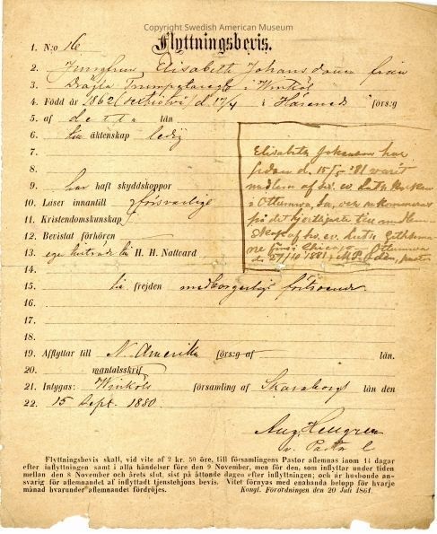 Moving certificate from Gethsemane Church, 1880.Context