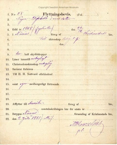 Moving certificate from Gethsemane Church, 1880.Context