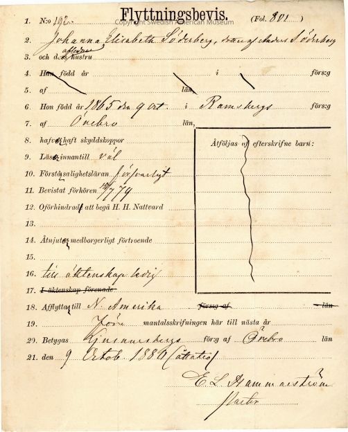 Moving certificate from Gethsemane Church, 1880.Context