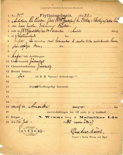 Moving certificate from Gethsemane Church, 1880.Context
