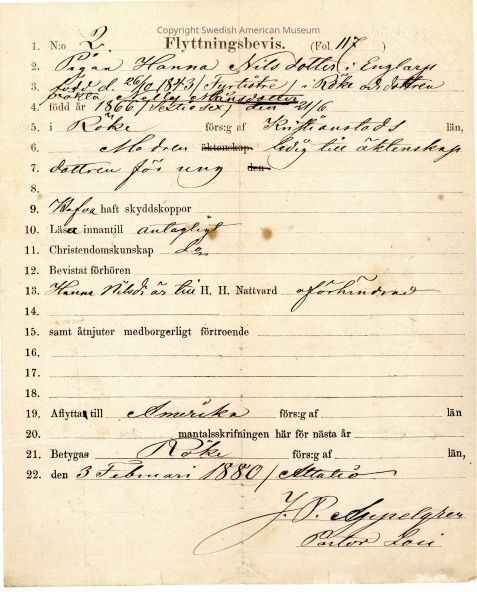 Moving certificate from Gethsemane Church, 1880.Context