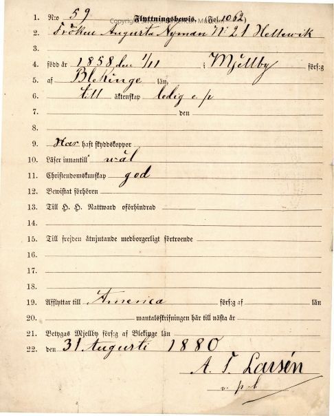 Associated with Augusta Nyman.Acquisition