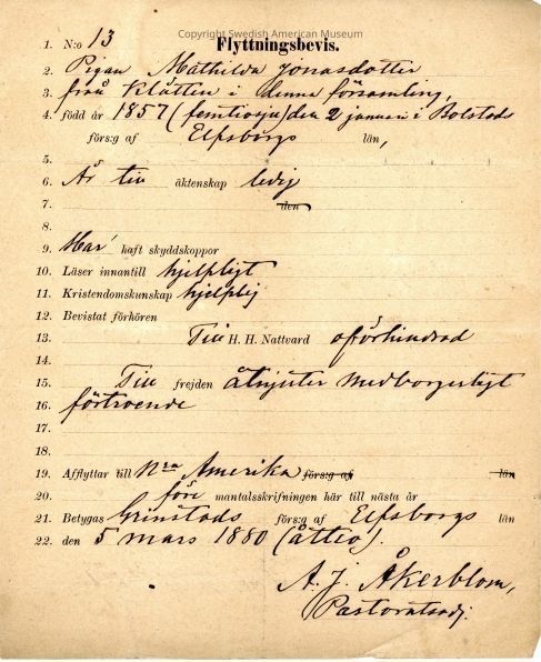 Associated with Mathilda Jonasdotter, maid.Acquisition
