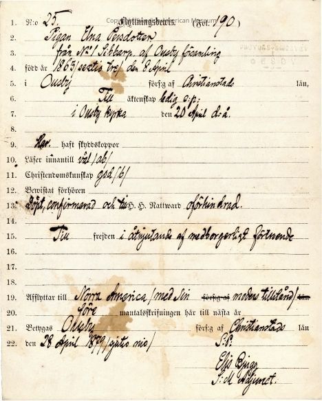 Moving certificate from Gethsemane Church, 1879.Context