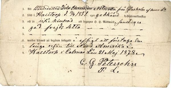 Certificate from Gethsemane Church, 1878.Context