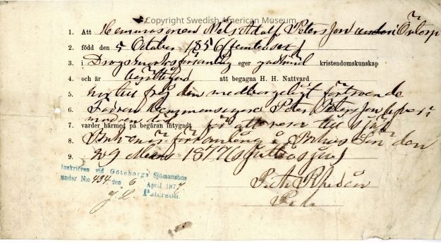 Certificate from Gethsemane Church, 1877.Context